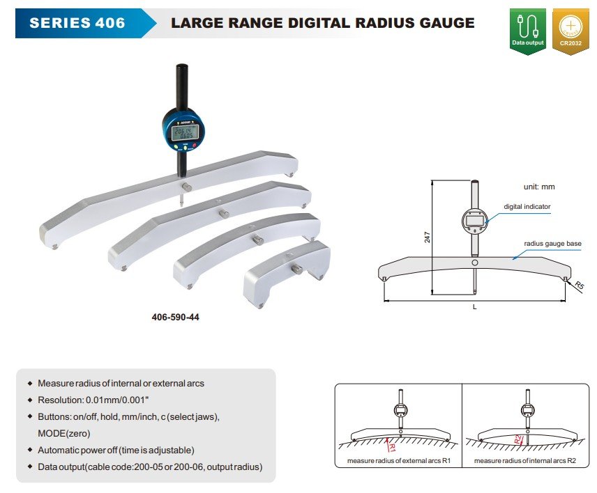 AACUD 406-025-11 digitální měřidlo poloměru s velkým rozsahem, 100-625mm