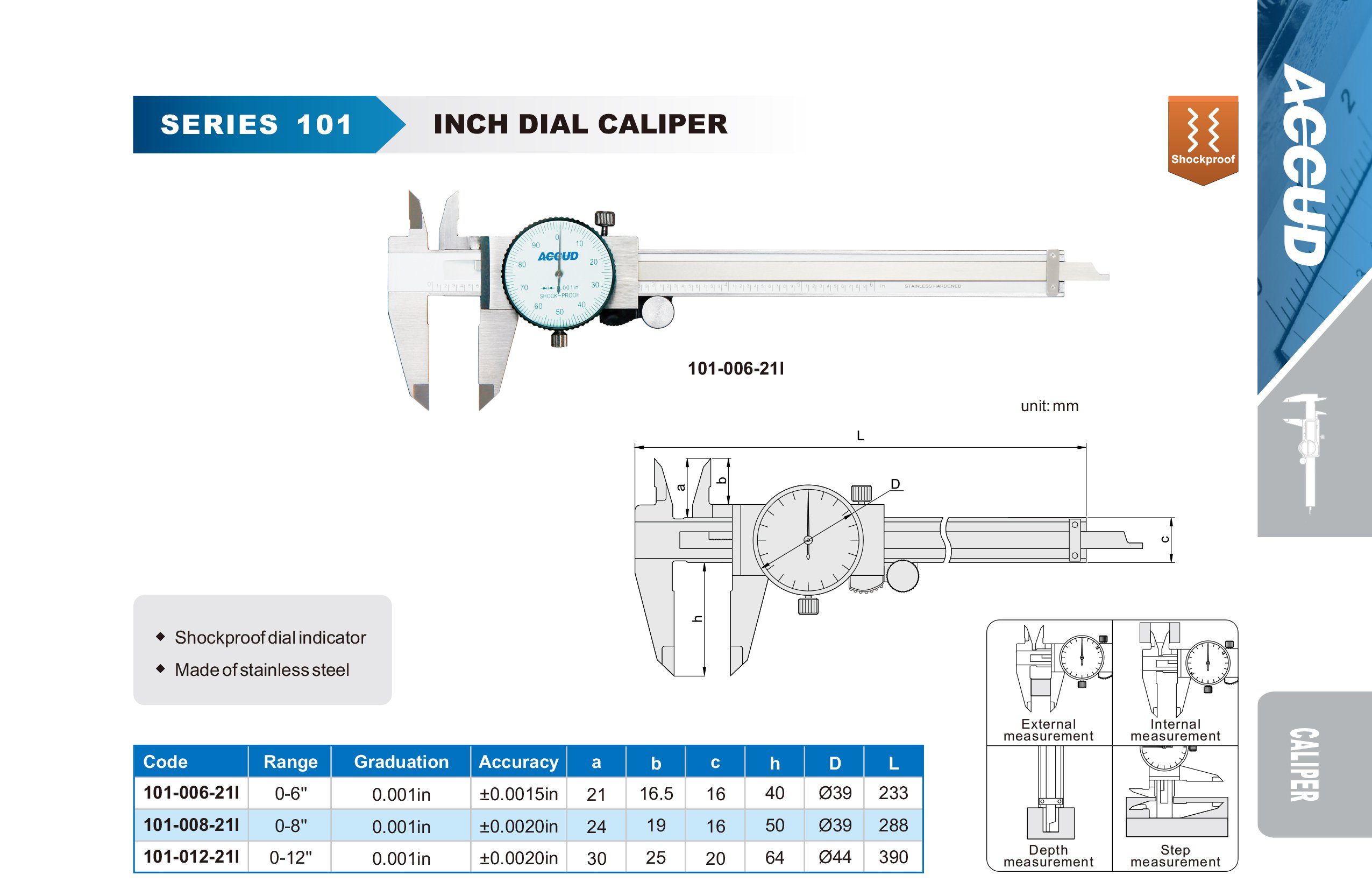 ACCUD 101-006-21I analogové posuvné měřítko s číselníkovým úchylkoměrem v palcích 6" ( .001" )