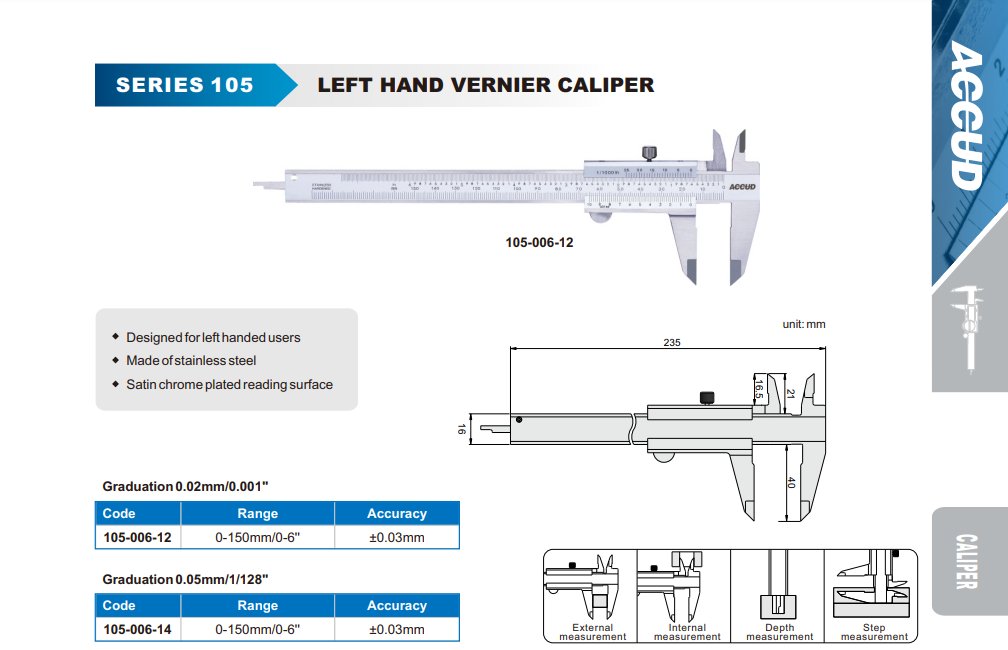 ACCUD 105-006-14 analogové posuvné měřítko pro leváky