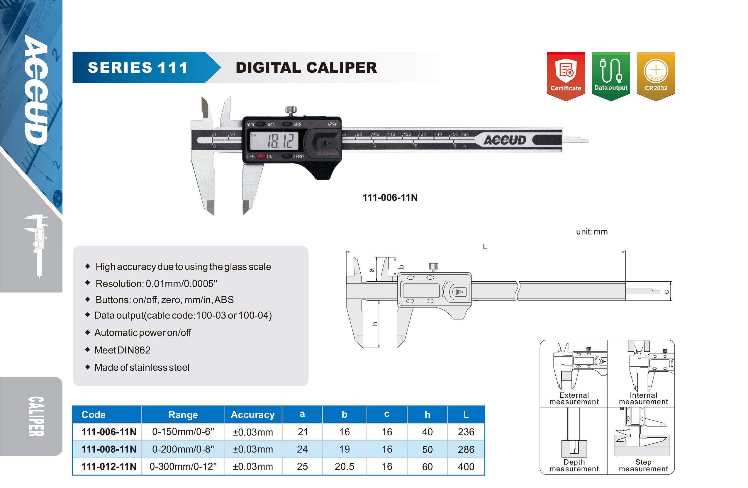 ACCUD 111-012-11N digitální posuvné měřítko 300mm/12" skelný odečet + ABS ( 0.01mm/0.0005" )