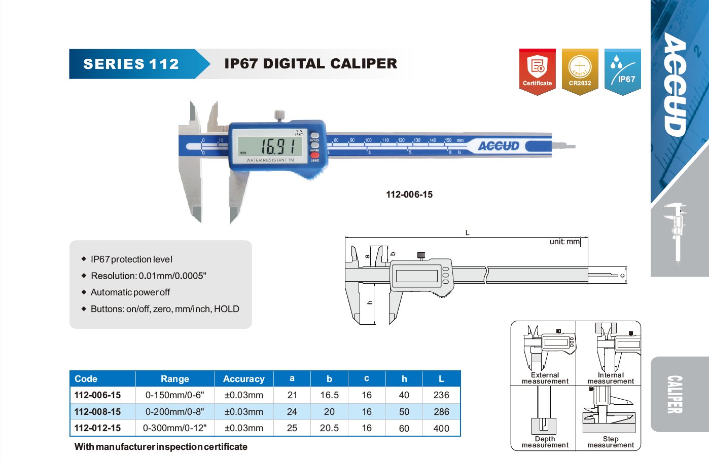 ACCUD 112-012-15 digitální posuvné měřítko IP67 0-300mm/0-12''