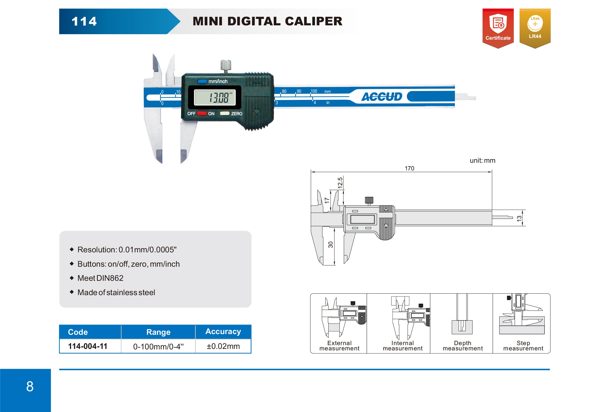 ACCUD 114-004-11 digitální posuvné měřítko 100mm MINI ( 0.01mm/0.0005" )