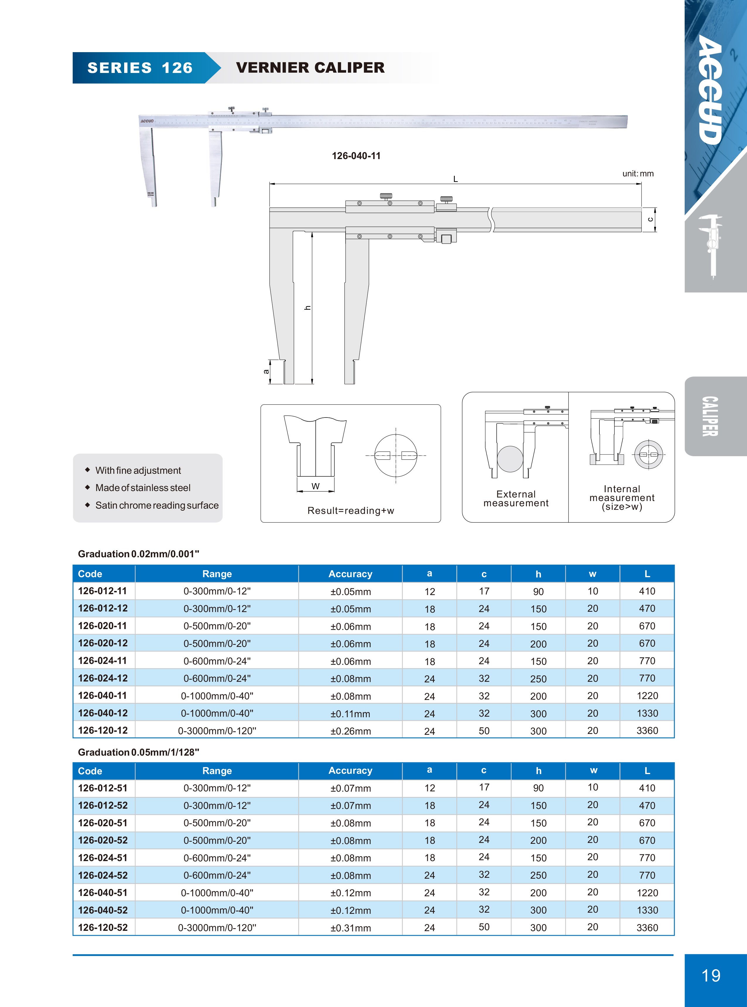 ACCUD 126-024-12 analogové posuvné měřítko 600mm/24" ( délka měřících ramen 250mm ) bez horních měřících ramen ( 0.02mm/0.001" )