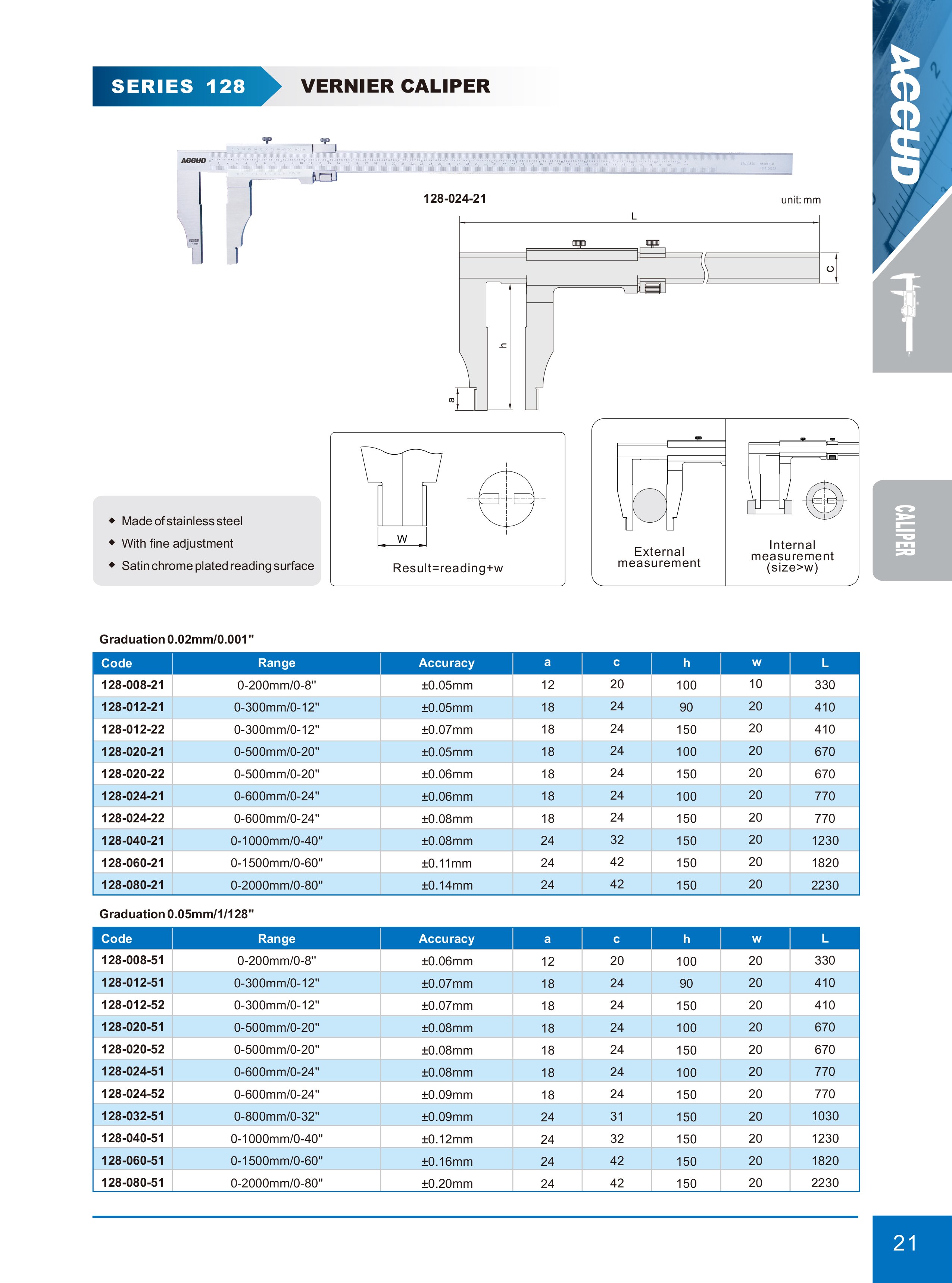 ACCUD 128-024-22 analogové posuvné měřítko 600mm/24" ( délka měřících ramen 150mm ) bez horních měřících ramen ( 0.02mm/0.001" )