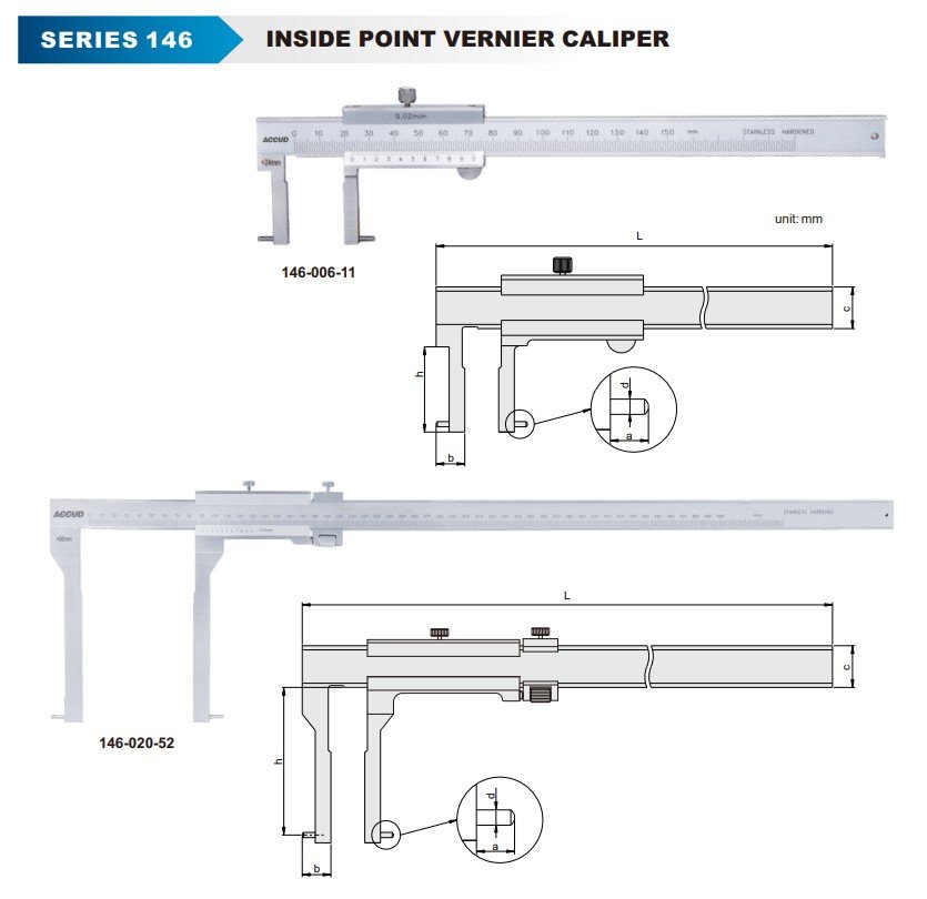 ACCUD 146-006-13 analogové posuvné měřítko pro vnitřní drážky 24-150mm ( 0.05mm )