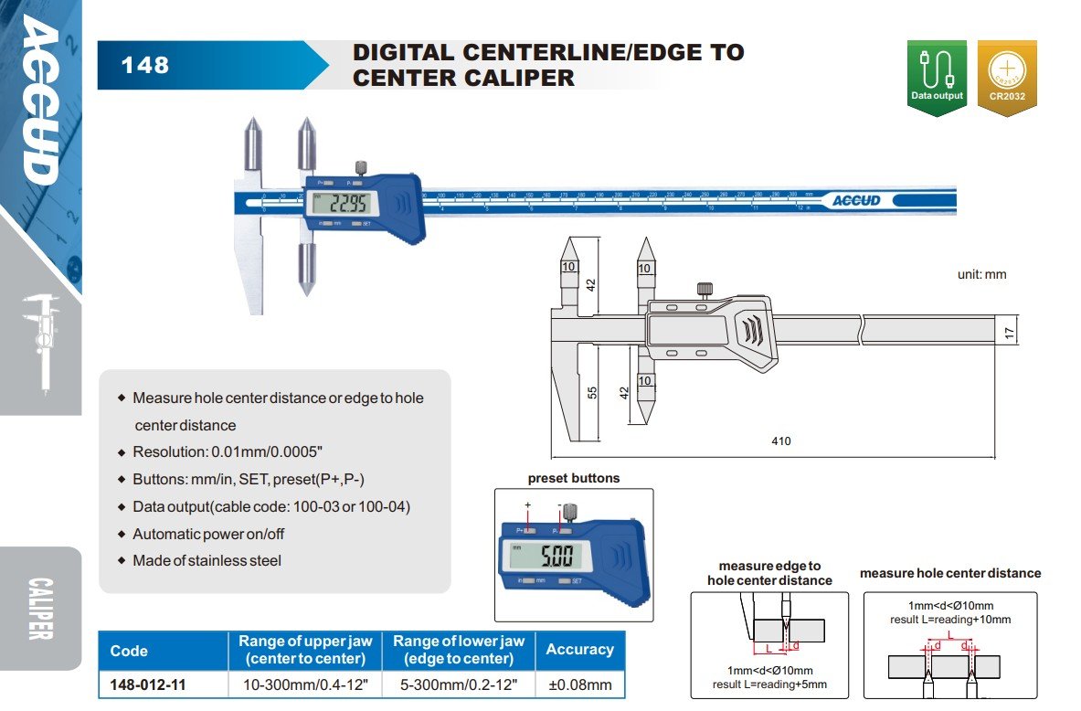 ACCUD 148-012-11 digitální posuvné měřítko pro měření od osy otvoru 5-300mm/0.2-12" ( 0.01mm/0.0005" )