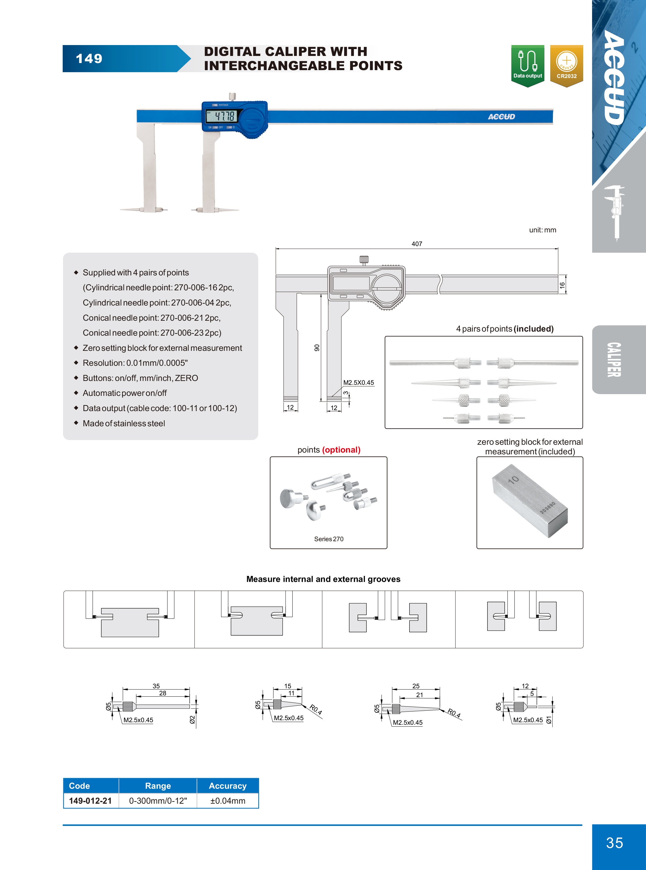 ACCUD 149-012-21 digitální posuvné měřítko s vyměnitelnými doteky 300mm/12" ( 0.01mm/0.0005" )