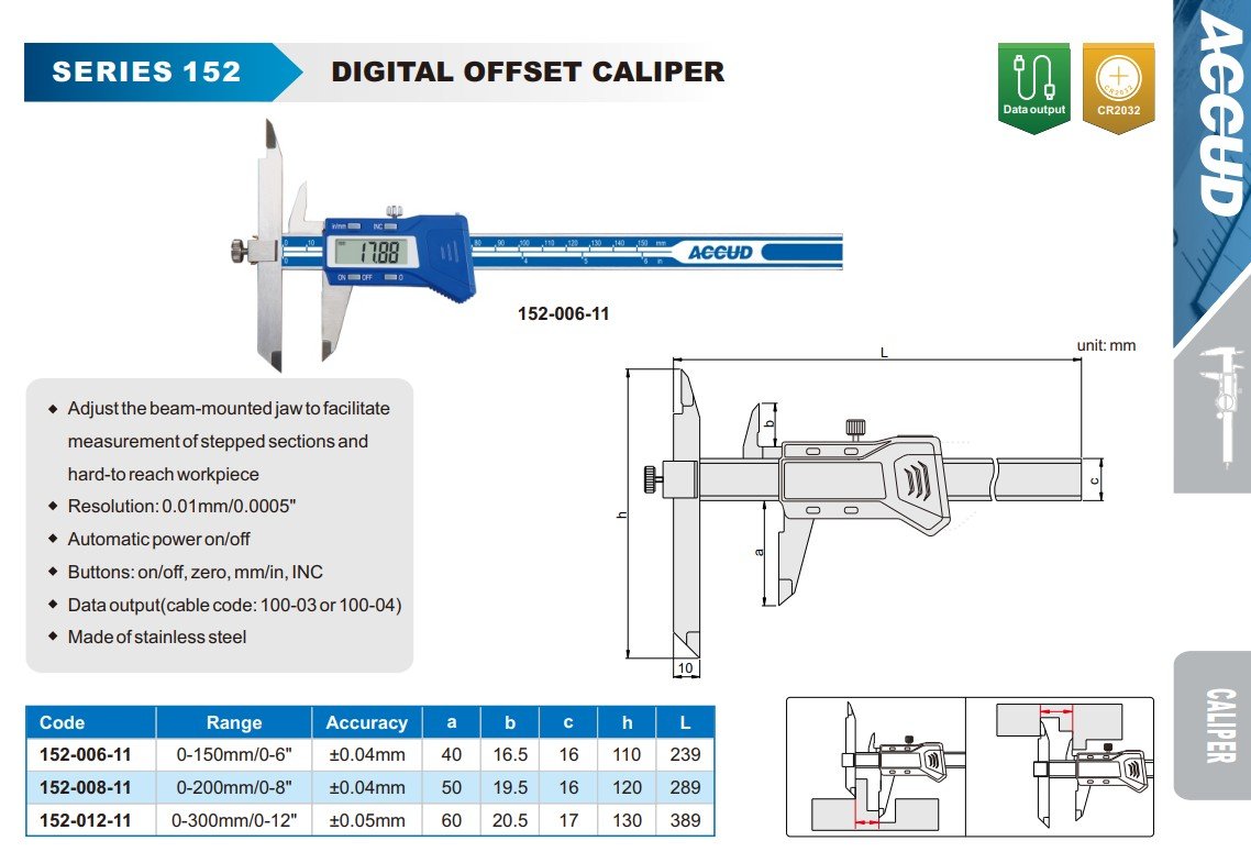 ACCUD 152-012-11 digitální posuvné měřítko s nastavitelným ramenem 0-300mm/0-12" ( 0.01mm/0.0005" )