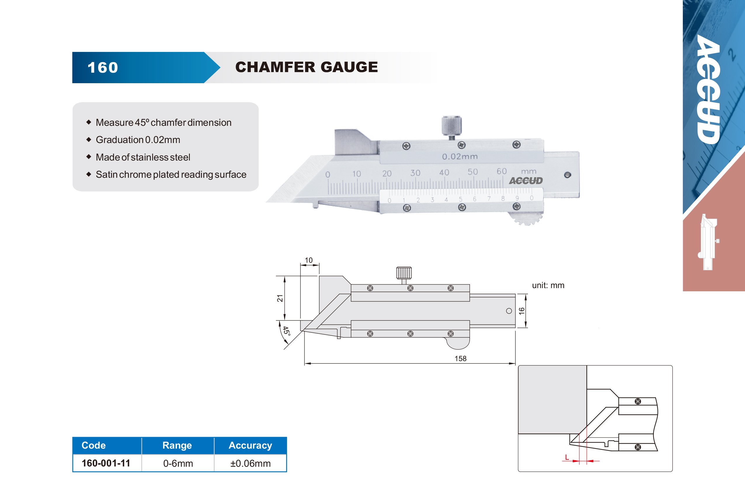 ACCUD 160-001-11 posuvné měřítko pro měření sražení hrany 45° 0-6mm ( 0.02mm )