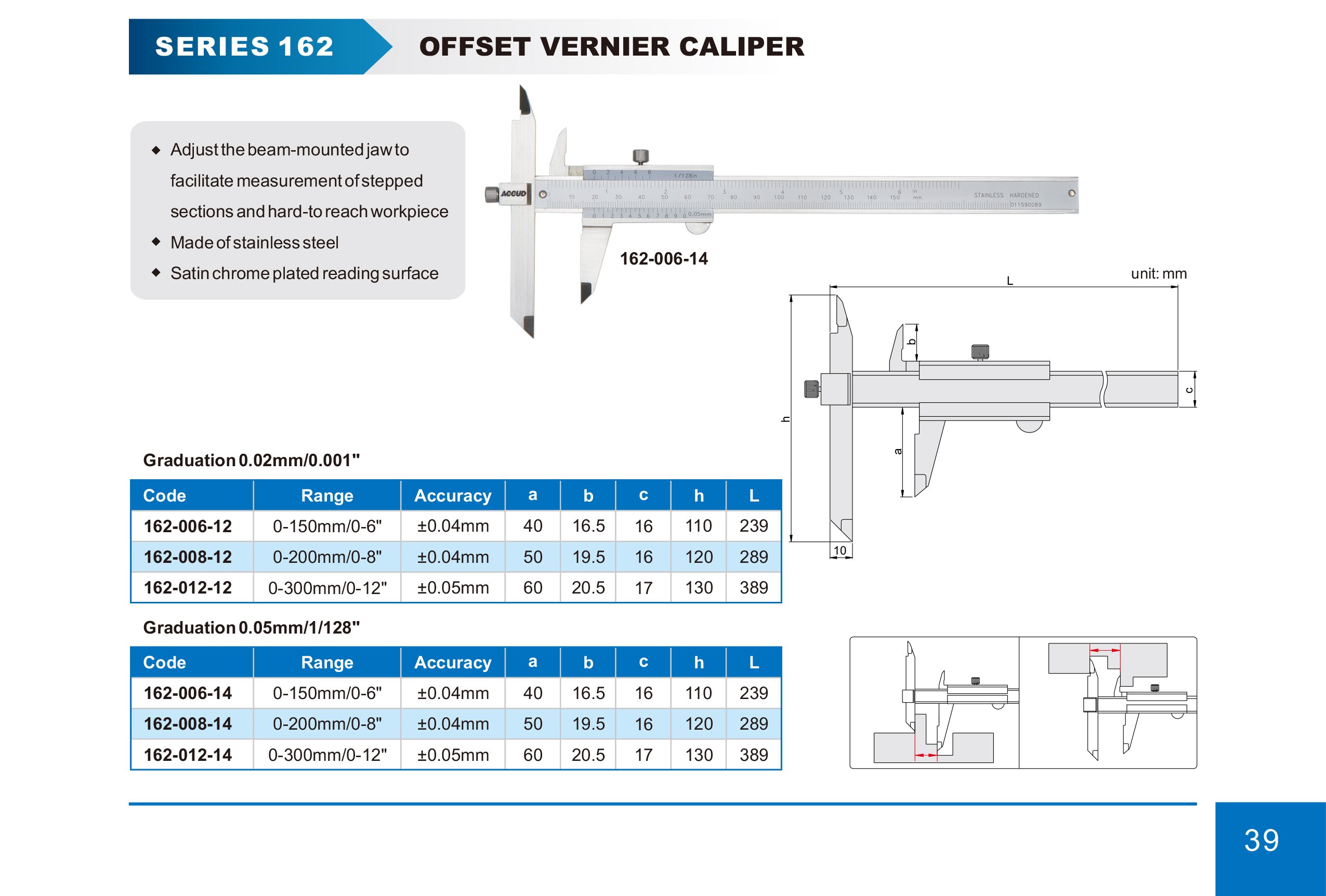Speciální analogové posuvné měřítko s rozsahem 0-300mm/0-12" pro měření drážek. Technická specifikace: Rozsah měření: 0-300mm/0-12" Dělení ( stupnice ) : 0.02mm/0.001" Přesnost měření : +/- 0,05mm… Více