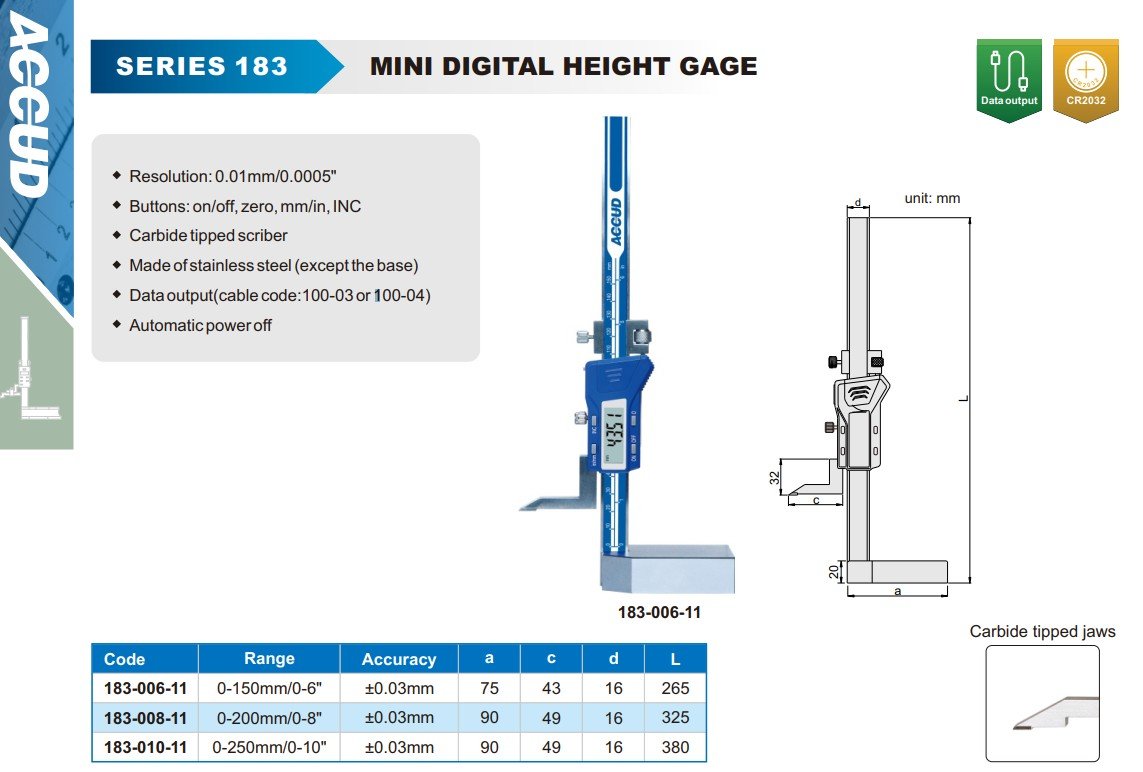 ACCUD 183-006-11 MINI digitální výškoměr 150mm/6" ( 0.01mm/0.0005" )
