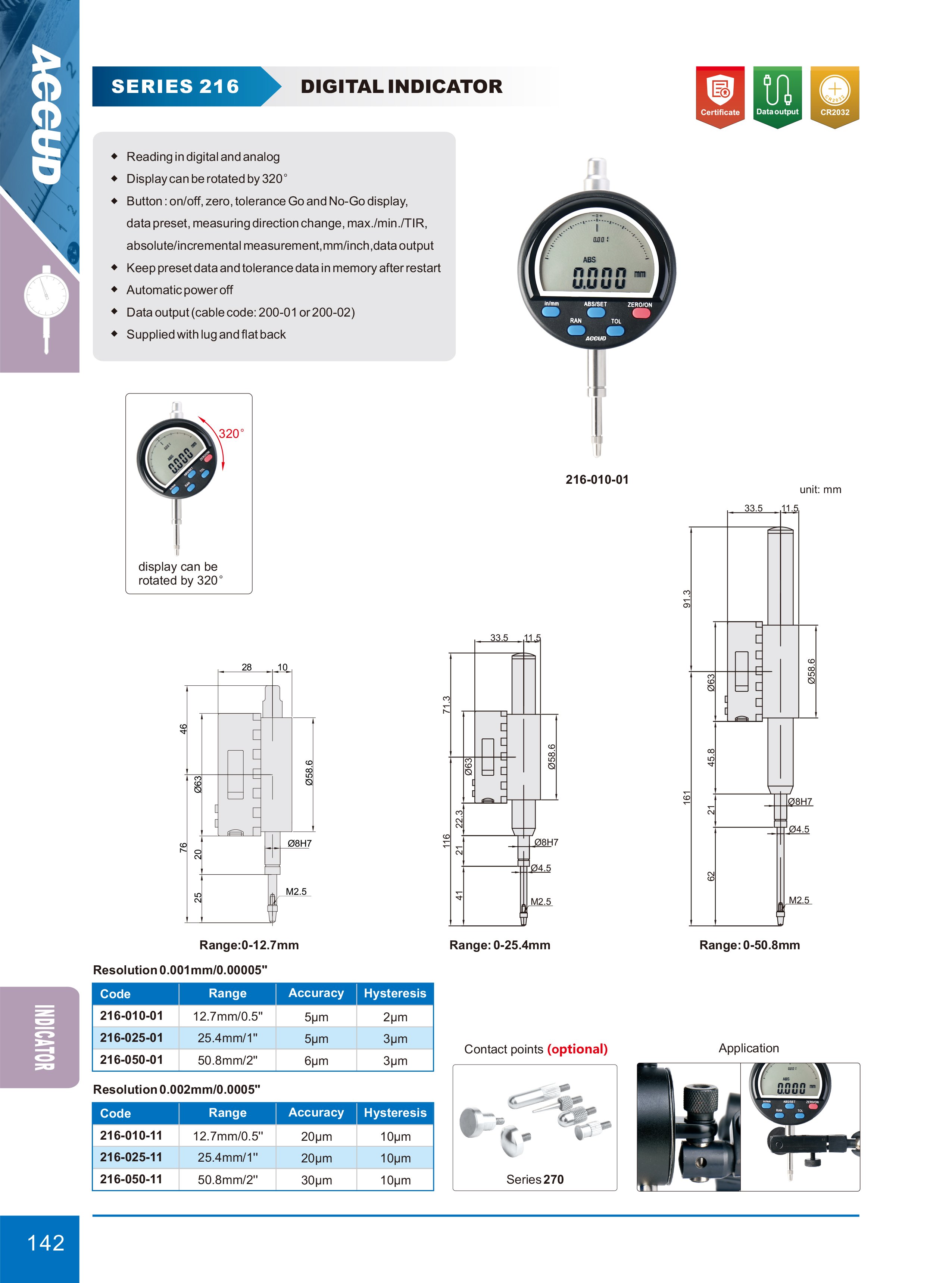 ACCUD 216-025-01 digitální úchylkoměr, s náhradní plochou zadní stranou / 25.4mm/1" / 0.001mm/0.00005"