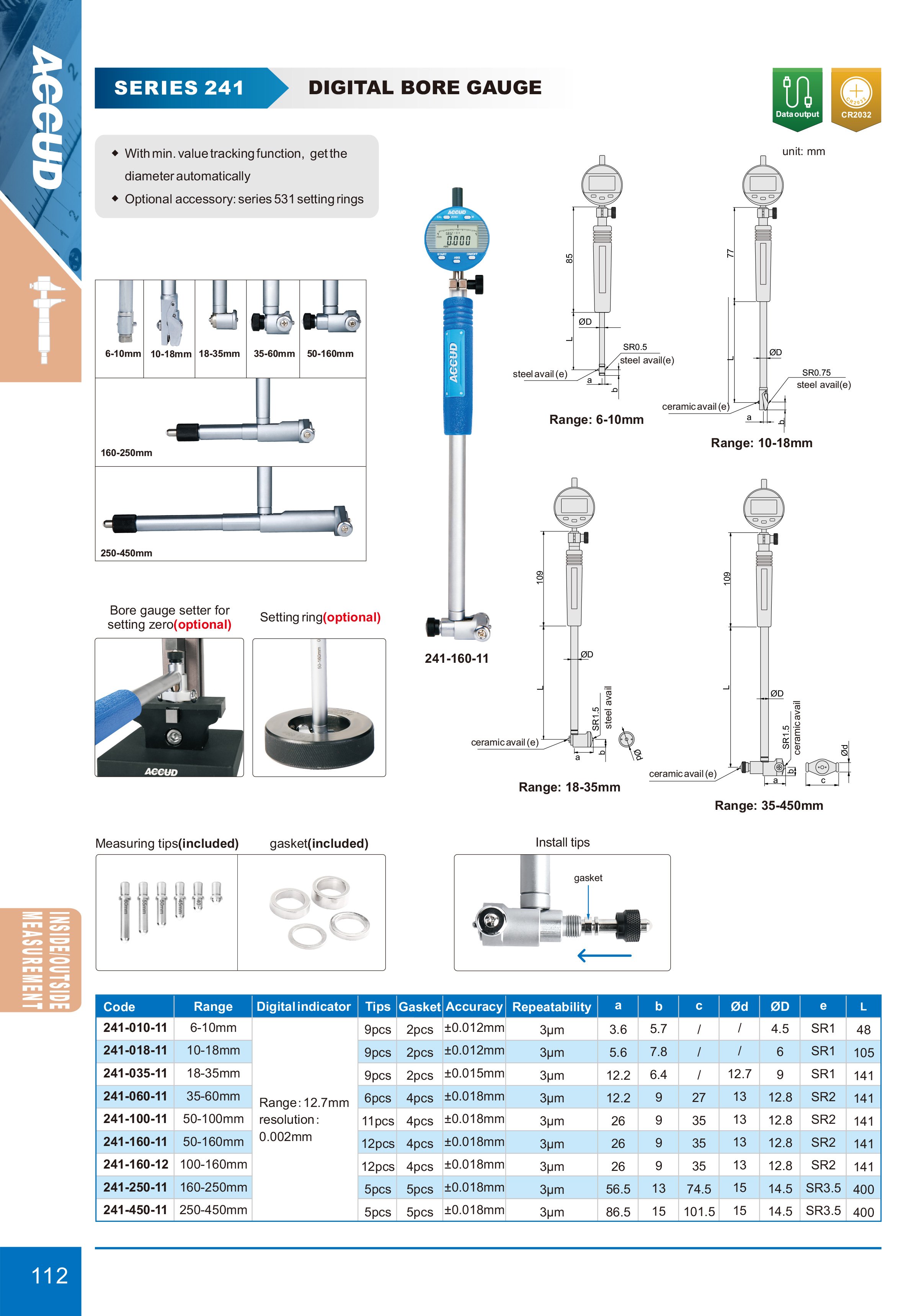 ACCUD 241-450-11 dutinoměr s digitálním úchylkoměrem / 250-450mm / 0.002mm