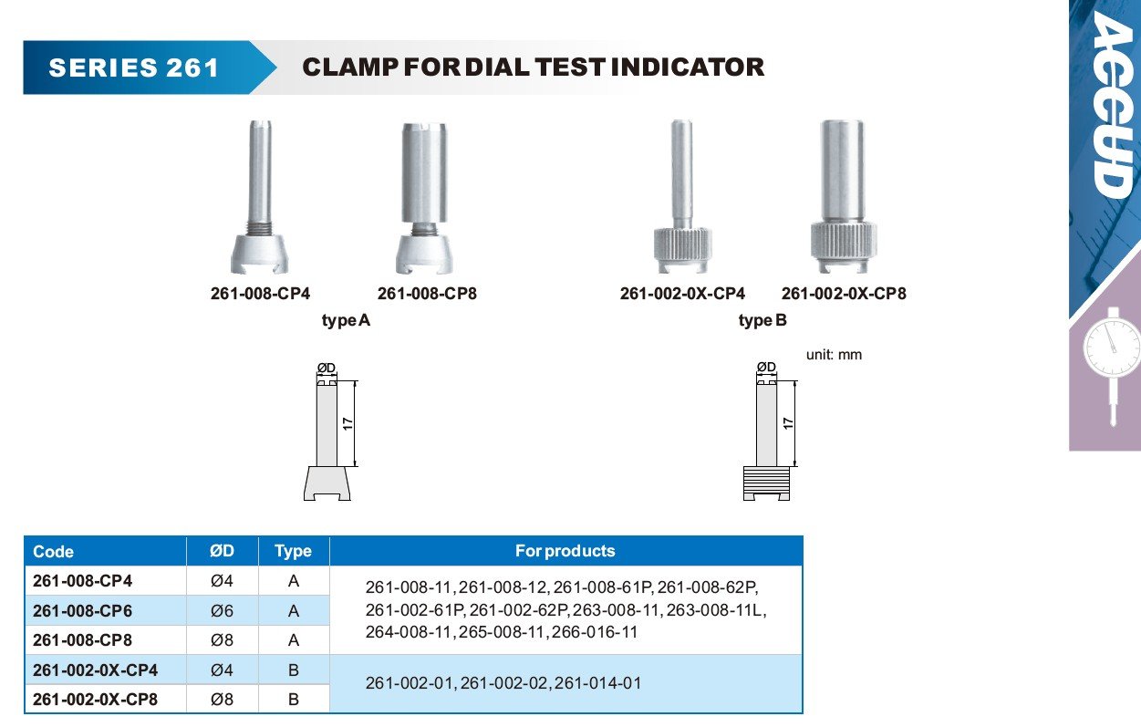 ACCUD 261-002-0X-CP8 upínka pro číselníkový úchylkoměr, Ø8