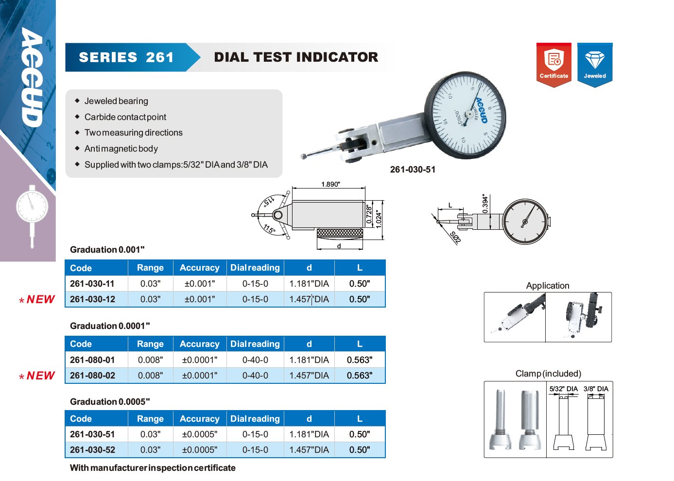 ACCUD 261-080-02 páčkový číselníkový úchylkoměr s měřením v palcích 0-0.08" ( 0.0001" ) ciferník pr. 1.457"