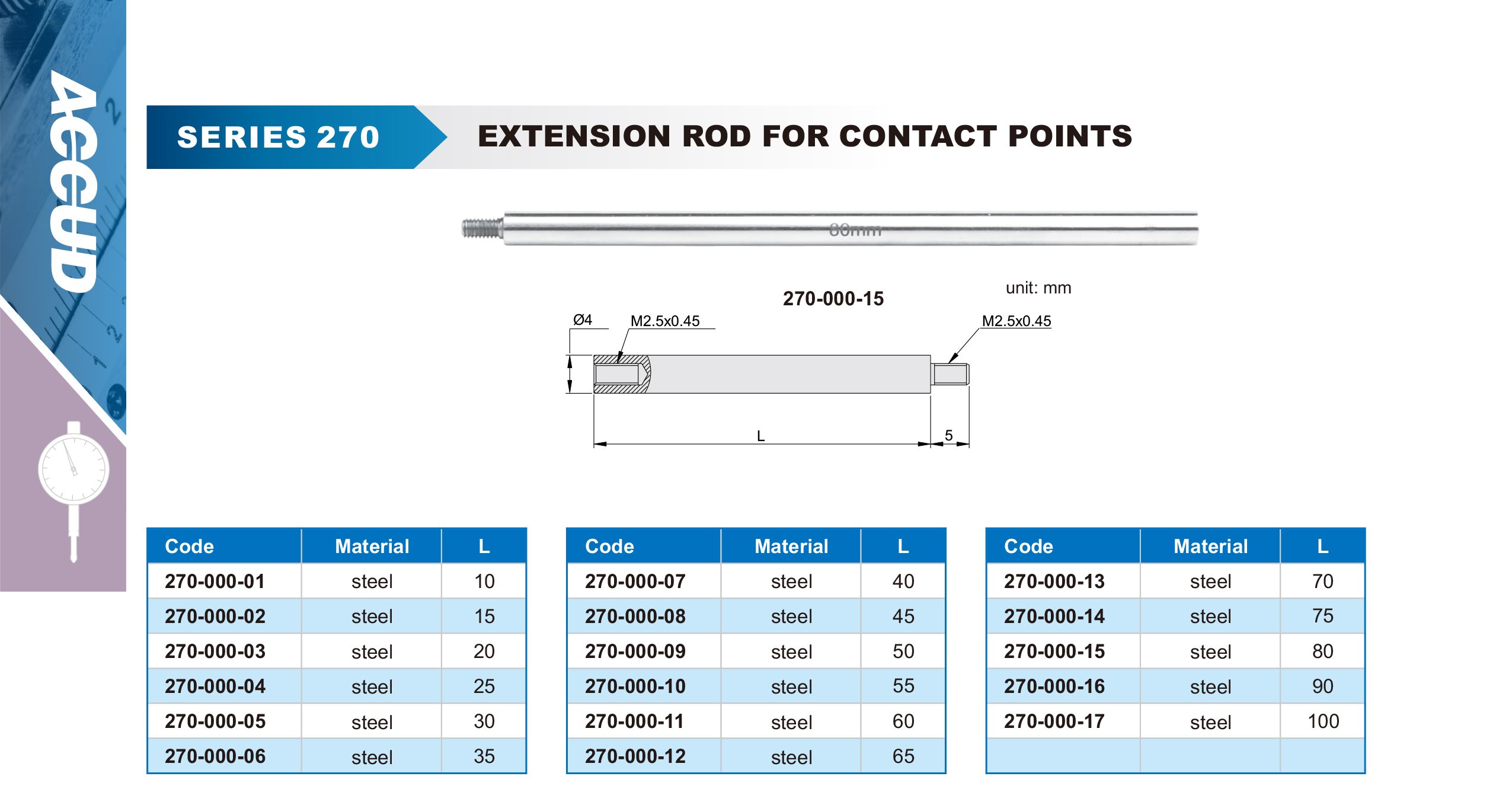 ACCUD 270-000-02 prodlužovací tyč k úchylkoměrům, ocel / 15mm /