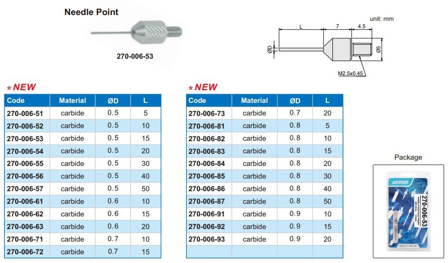 Jehlový měřicí dotek s karbidovou špičkou určený pro přesná měření úchylkoměry v jemných aplikacích. Rozměry: Další informace o produktu naleznete v níže přiloženém datovém listu ve… Více