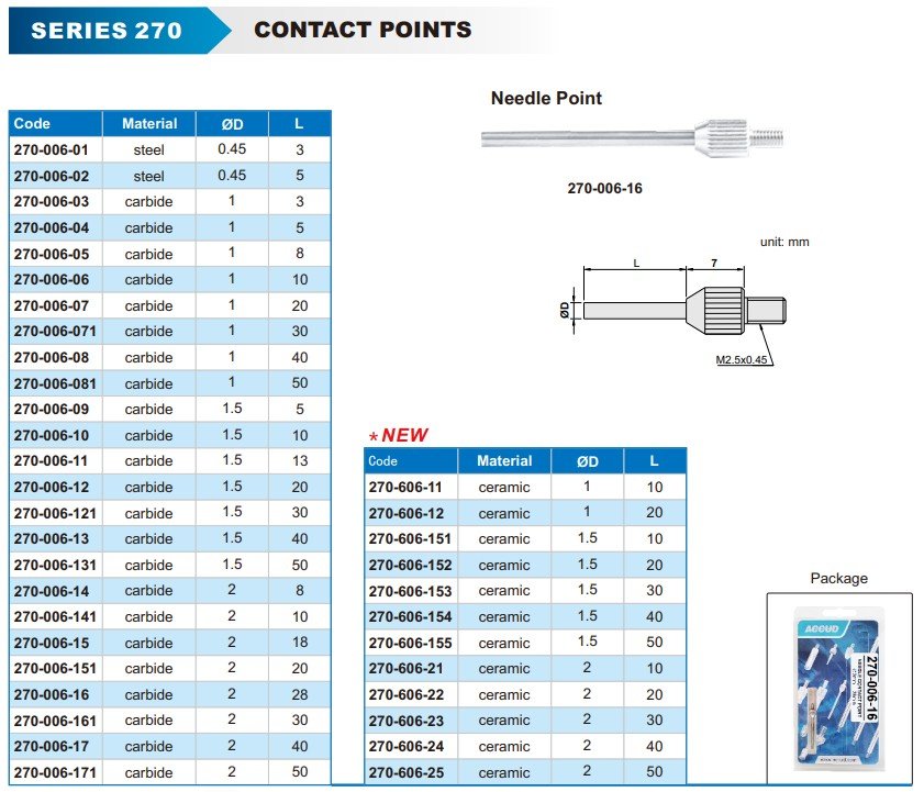 ACCUD 270-606-23 měřící dotek pro úchylkoměry standardní, keramický / pr. 2mm x 30 /