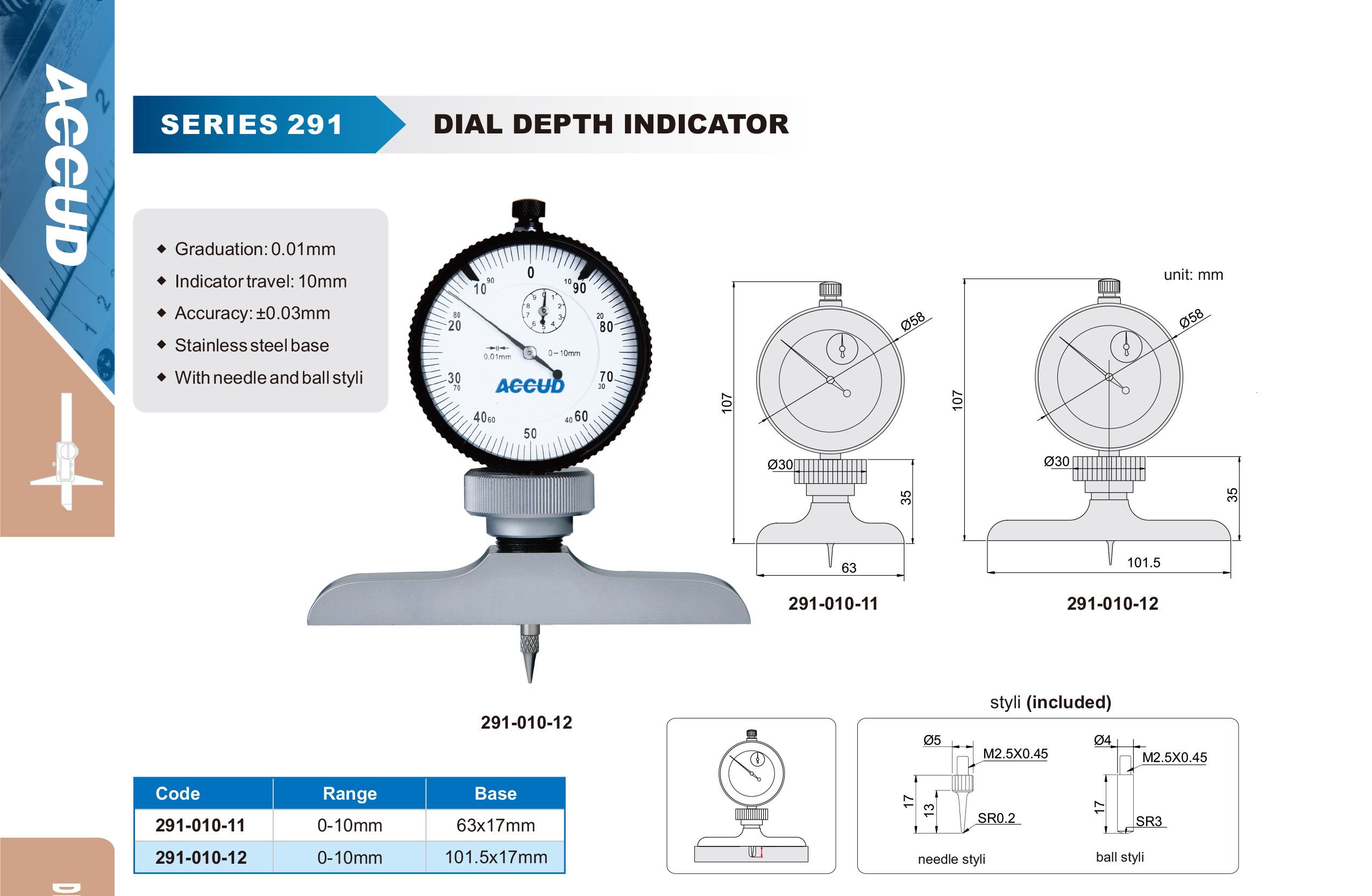 ACCUD 291-010-11 mechanický hloubkoměr 0-10mm se základnou 63x17mm ( 0.01mm )