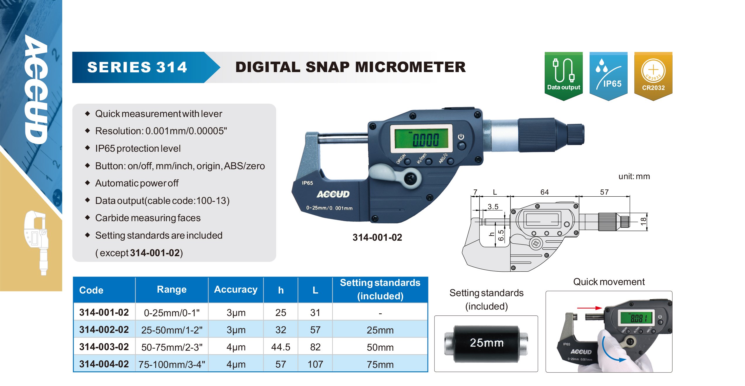 ACCUD 314-003-02 digitální mikrometr s rychloposuvem 50-75mm IP65 s datovým výstupem (0.001mm/0.00005")