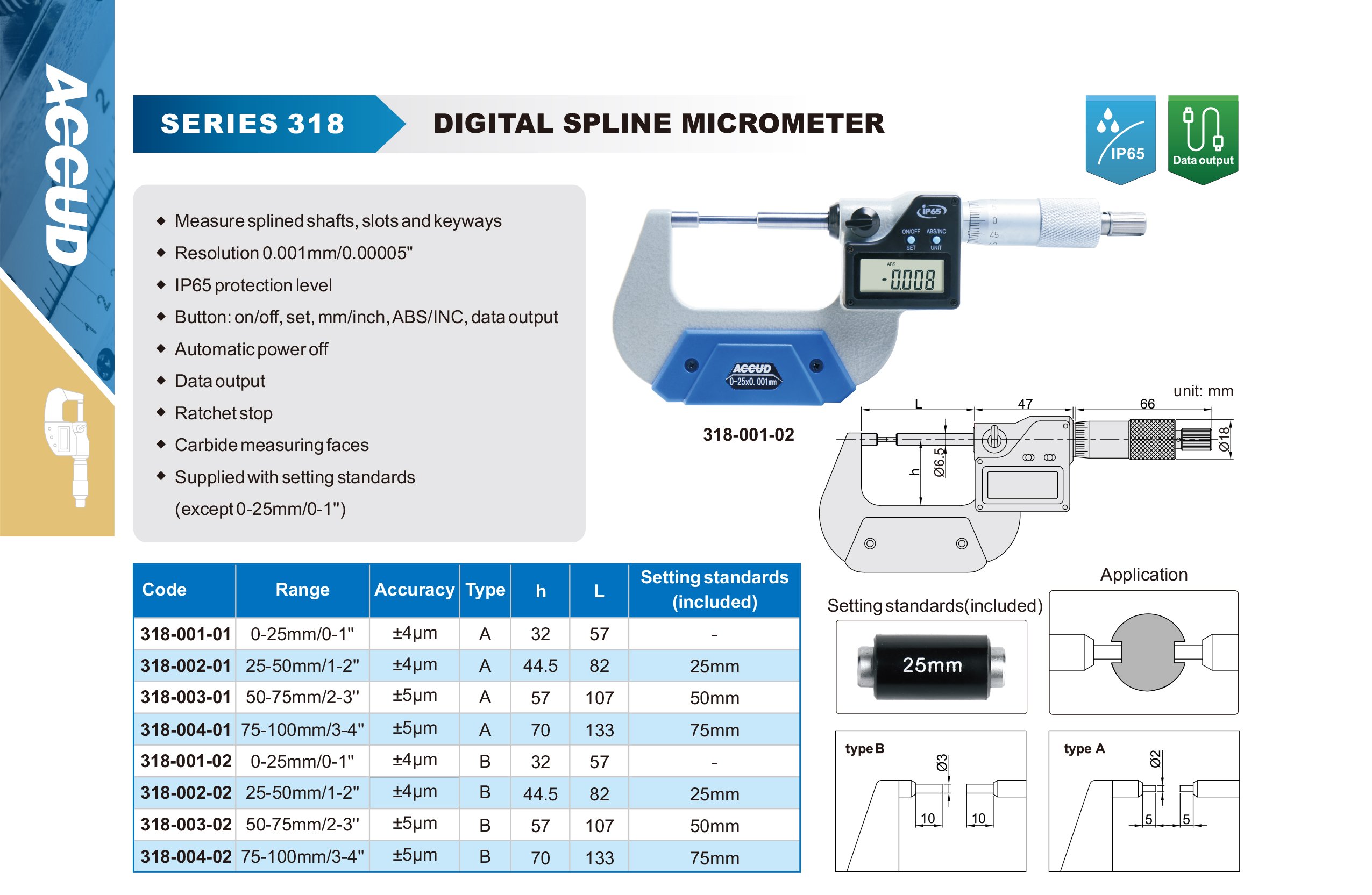 ACCUD 318-004-02 digitální drážkový mikrometr 75-100mm/3-4", 10xΦ3mm (0.001mm/0.00005")