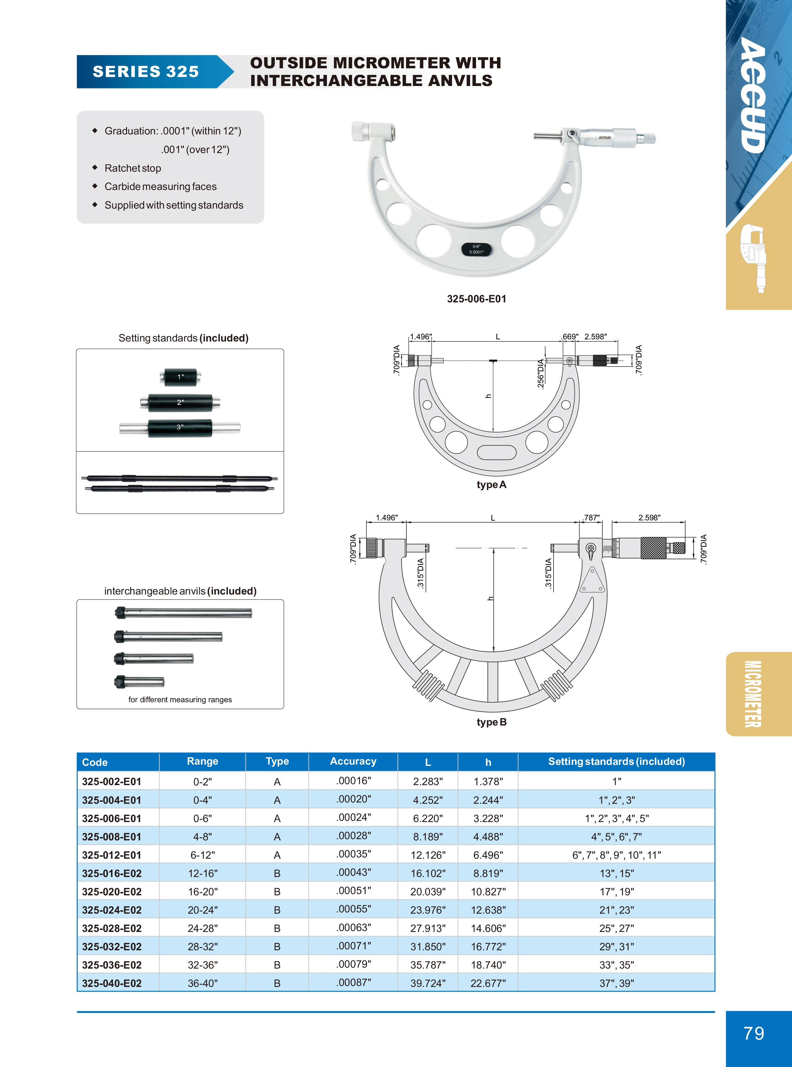 ACCUD 325-036-E02 mikrometr 32-36" s výměnnými měřícími doteky (0.001in)