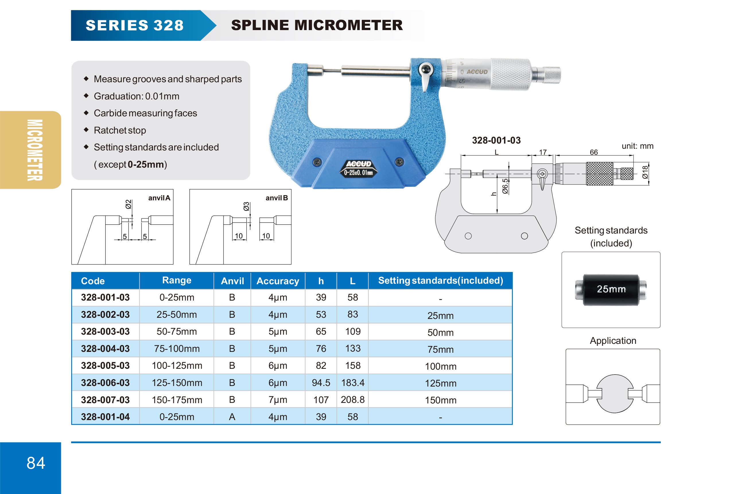 ACCUD 328-005-03 mikrometr se zúženými měřícími doteky 100-125mm (10xΦ3mm) (0.01mm)