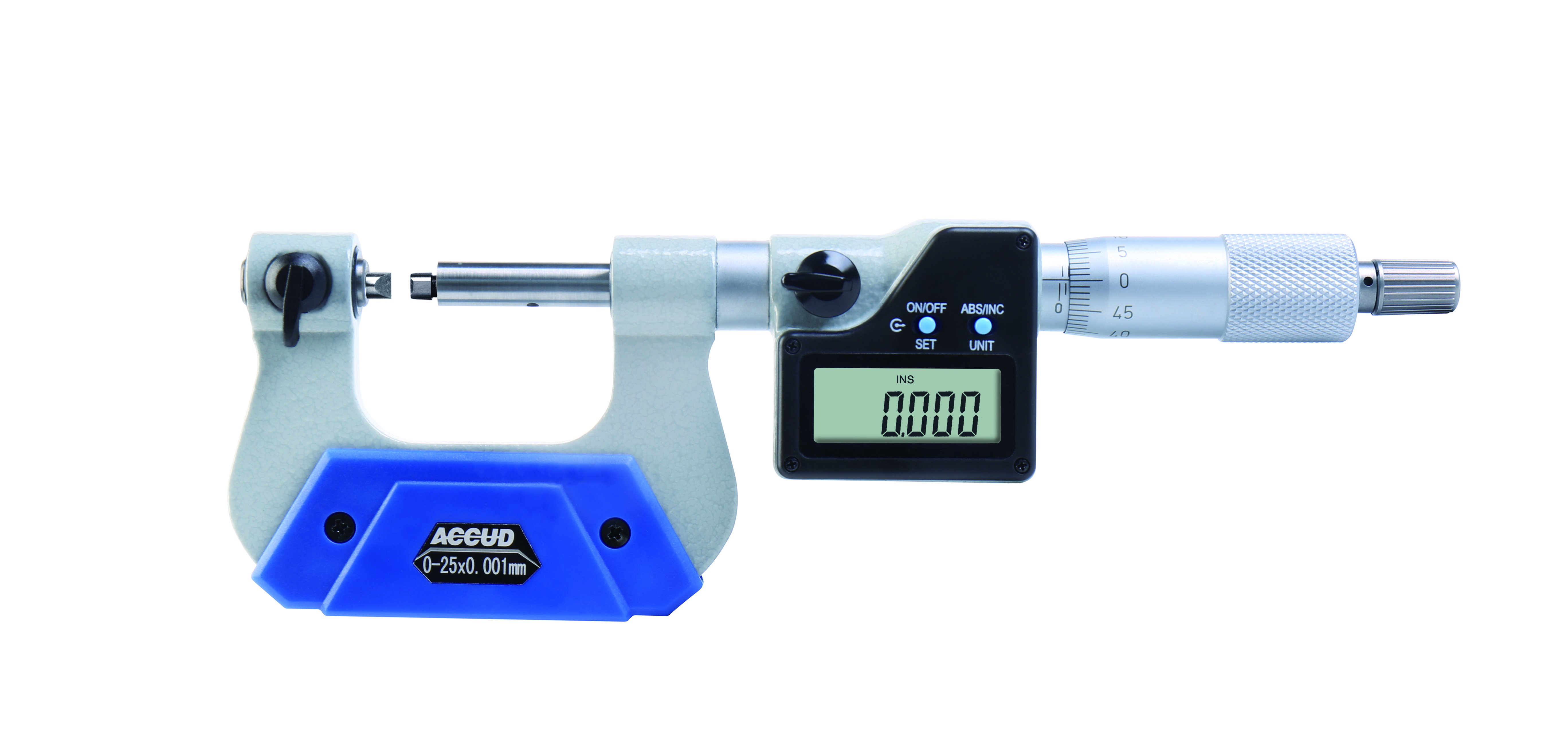 ACCUD 333-007-01 digitální třmenový mikrometr na měření šroubového závitu, 150-175mm/6-7" bez měřících doteků (0.001mm/0.00005")
