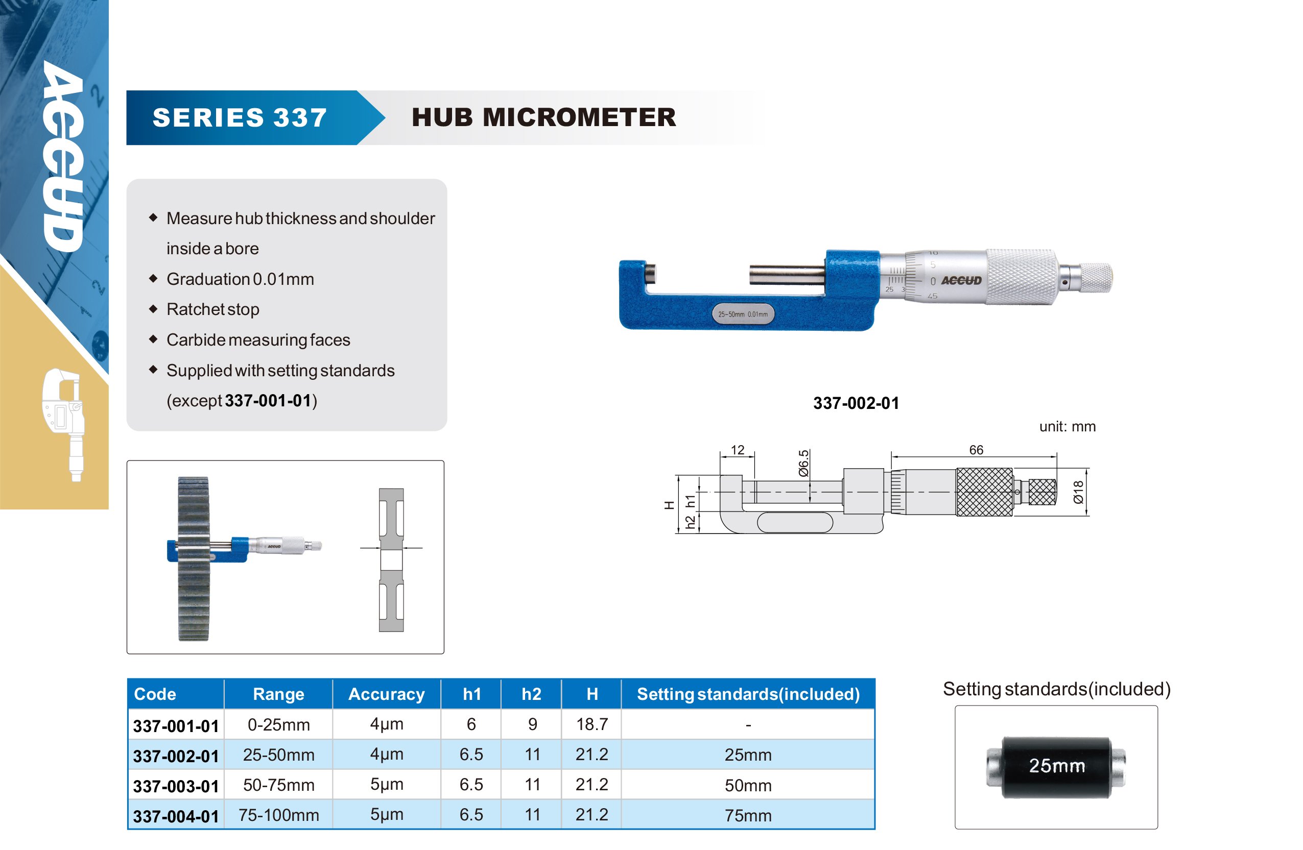 ACCUD 337-002-01 třmenový mikrometr 25-50mm na měření ložiskových pouzder (0.01mm)