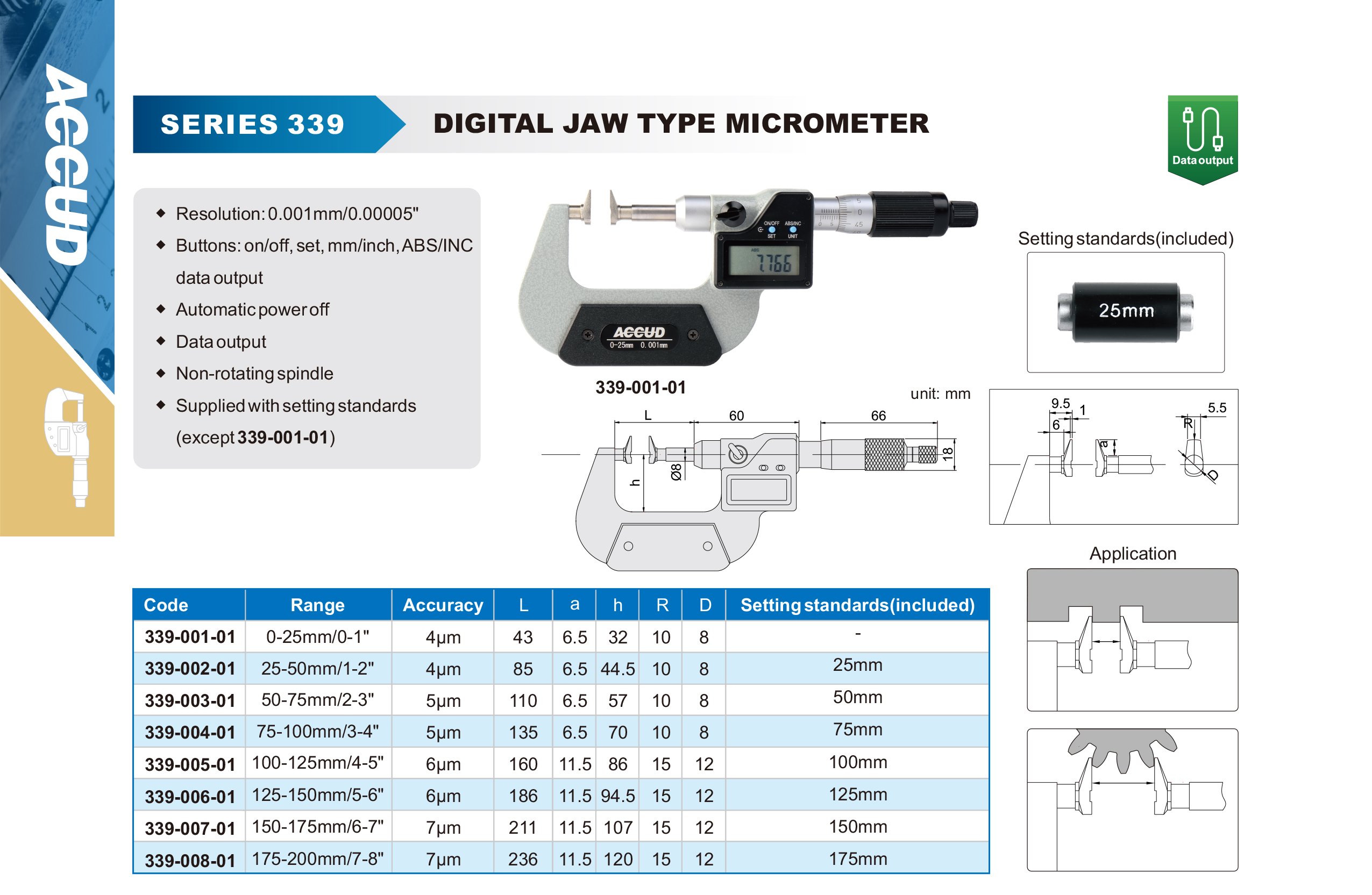 ACCUD 339-007-01 digitální mikrometr s měřícími čelistmi 150-175mm/6-7" (0.001mm/0.00005")