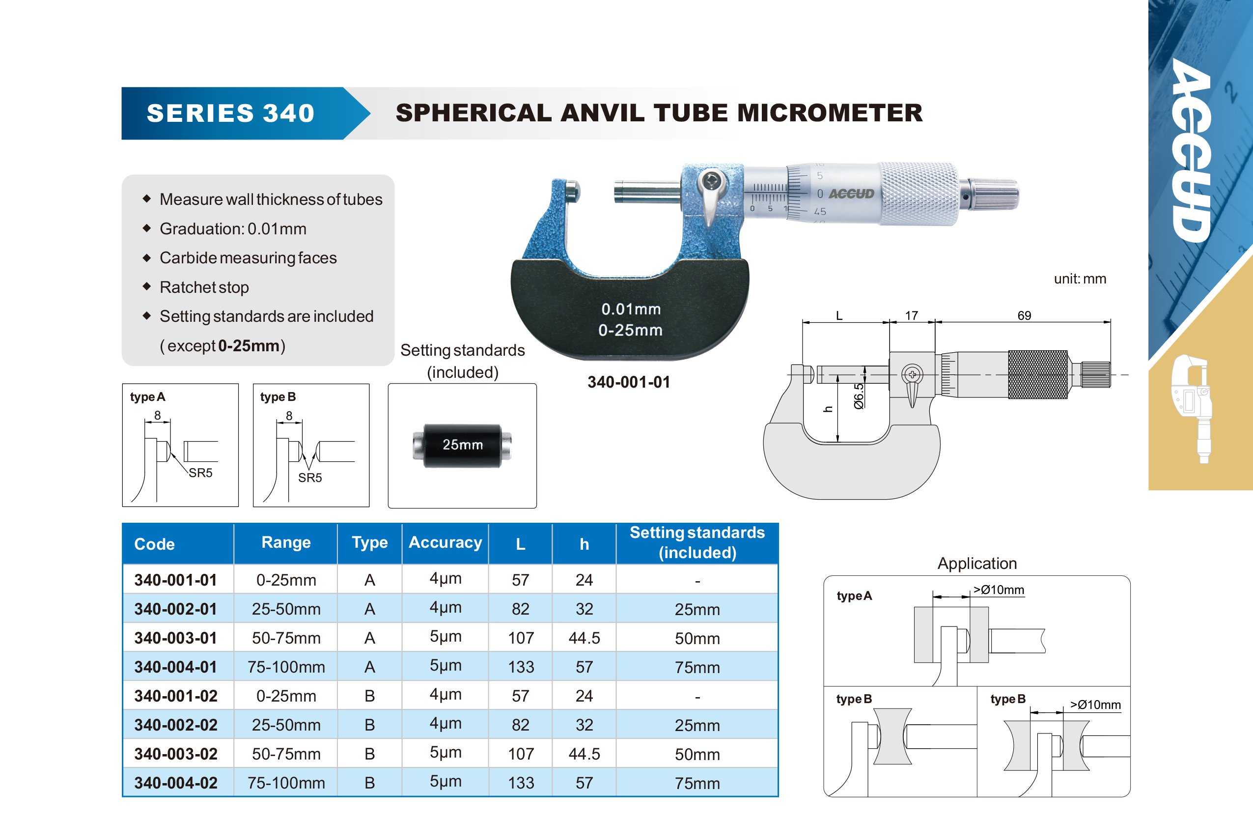 ACCUD 340-007-01 mikrometr 150-175mm s kulovou měřicí plochou na jedné straně, typ A (0.01mm)