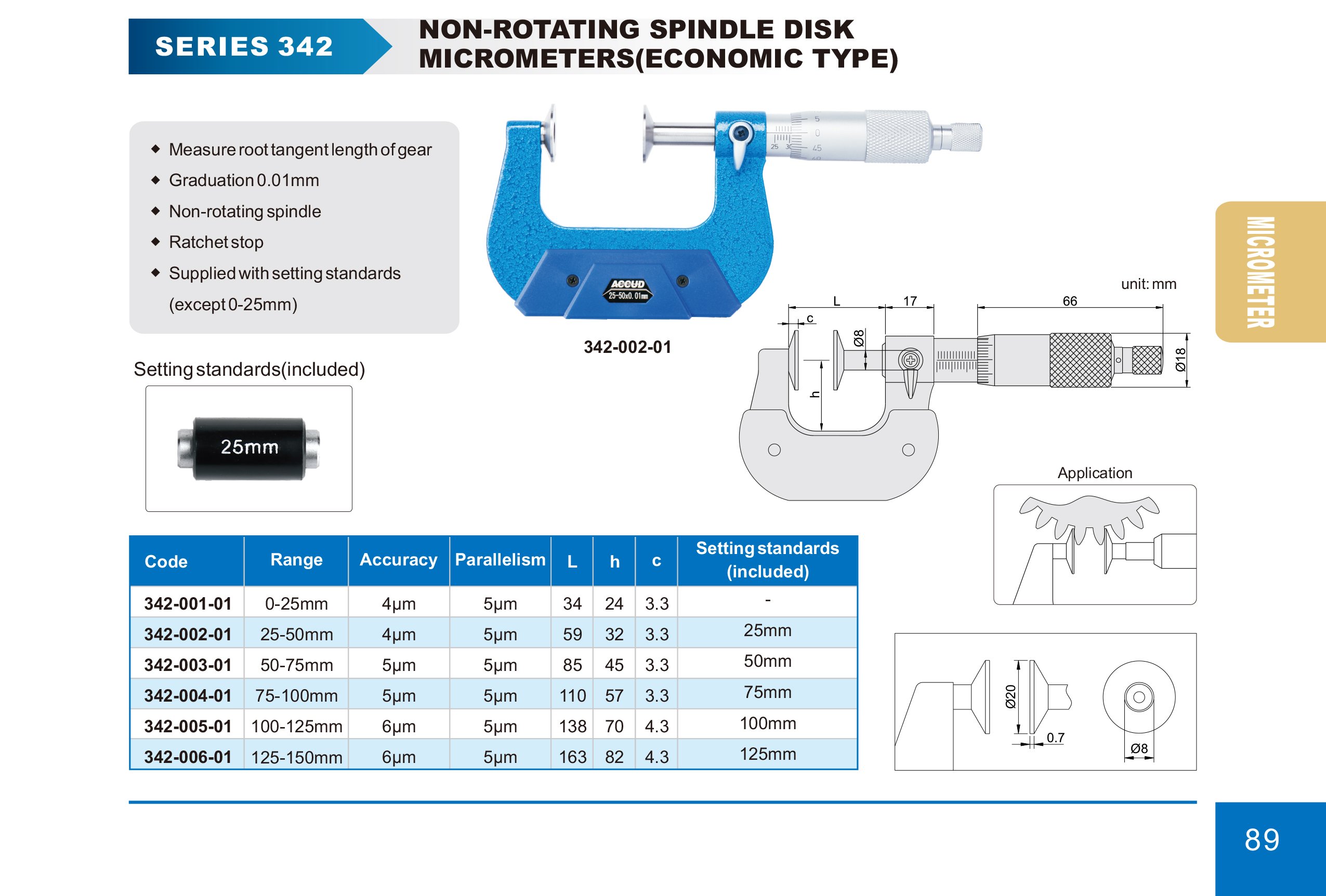 Speciální analogový mikrometr s neotáčivými talířkovými měřicími plochami pro měření ozubených kol.