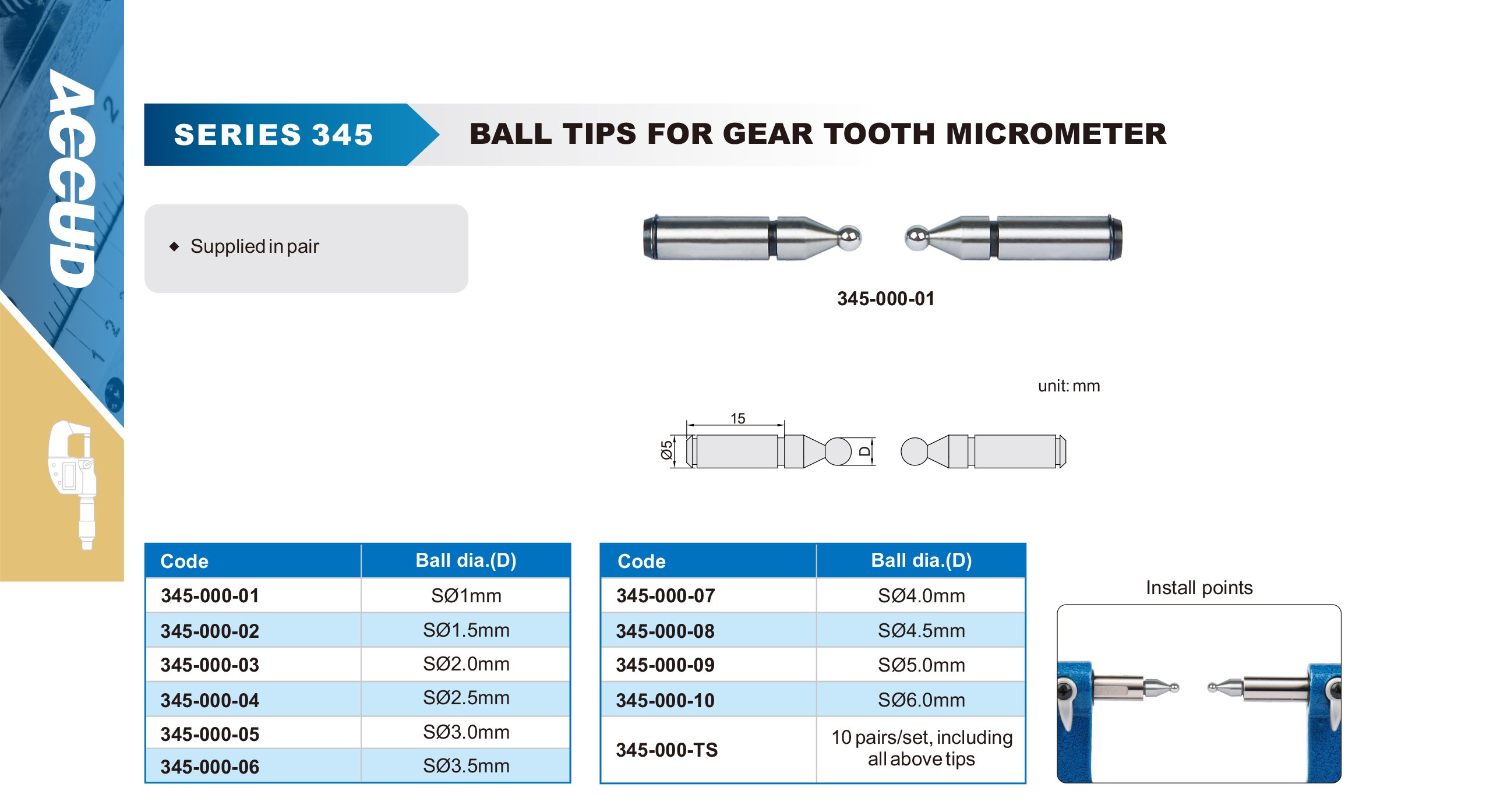 ACCUD 345-000-02 kuličkové měřicí doteky pro mikrometry a posuvná měřítka SΦ1.5mm