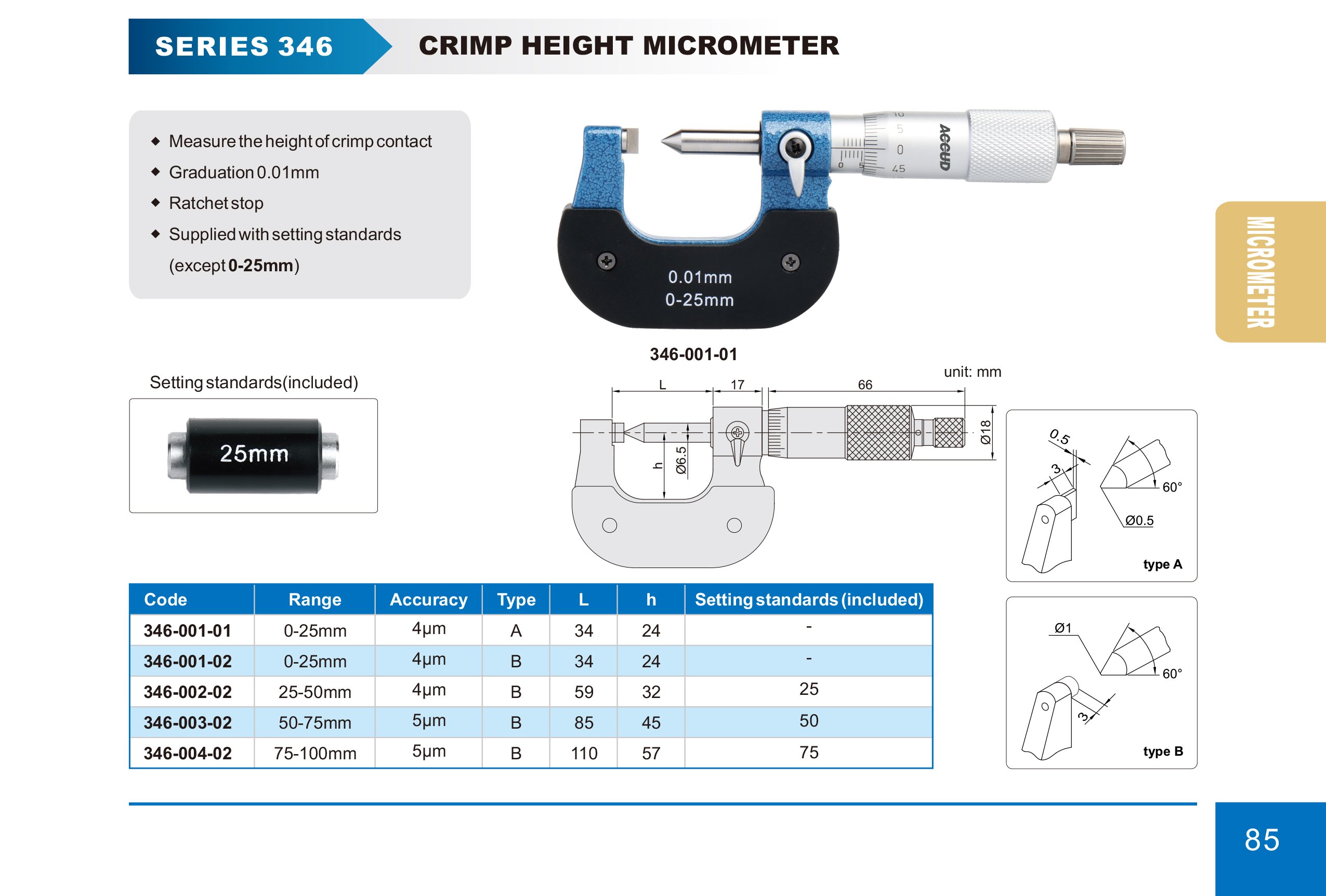 ACCUD 346-001-02 třmenový mikrometr 0-25mm na měření zřasení (0.01mm)