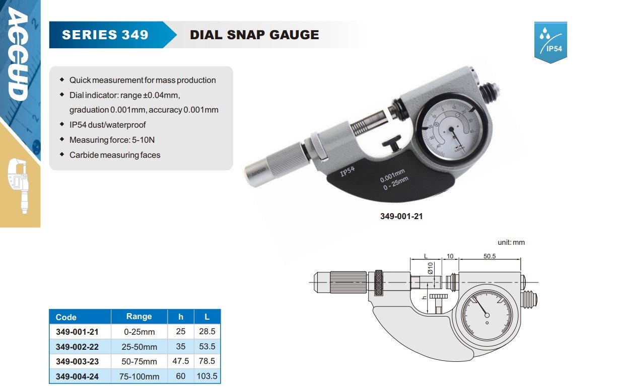 Pasametr Technická specifikace: Rozsah: 25-50mm Rychlé měření pro sériovou výrobu Číselník: rozsah ±0.04mm Rozlišení: 0.001mm Přesnost: 0.001mm Odolnost proti prachu/vodě IP54 Měřicí síla: 5-10N… Více