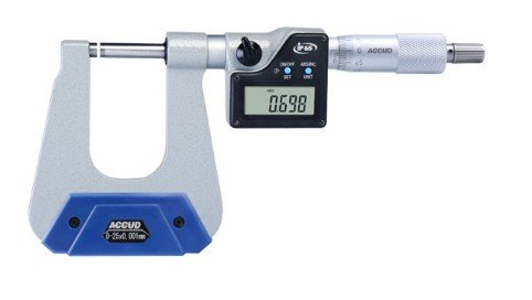 ACCUD 350-001-13 digitální mikrometr na plech 0-25mm/0-1" h150mm IP65 (0.001mm/0.00005)