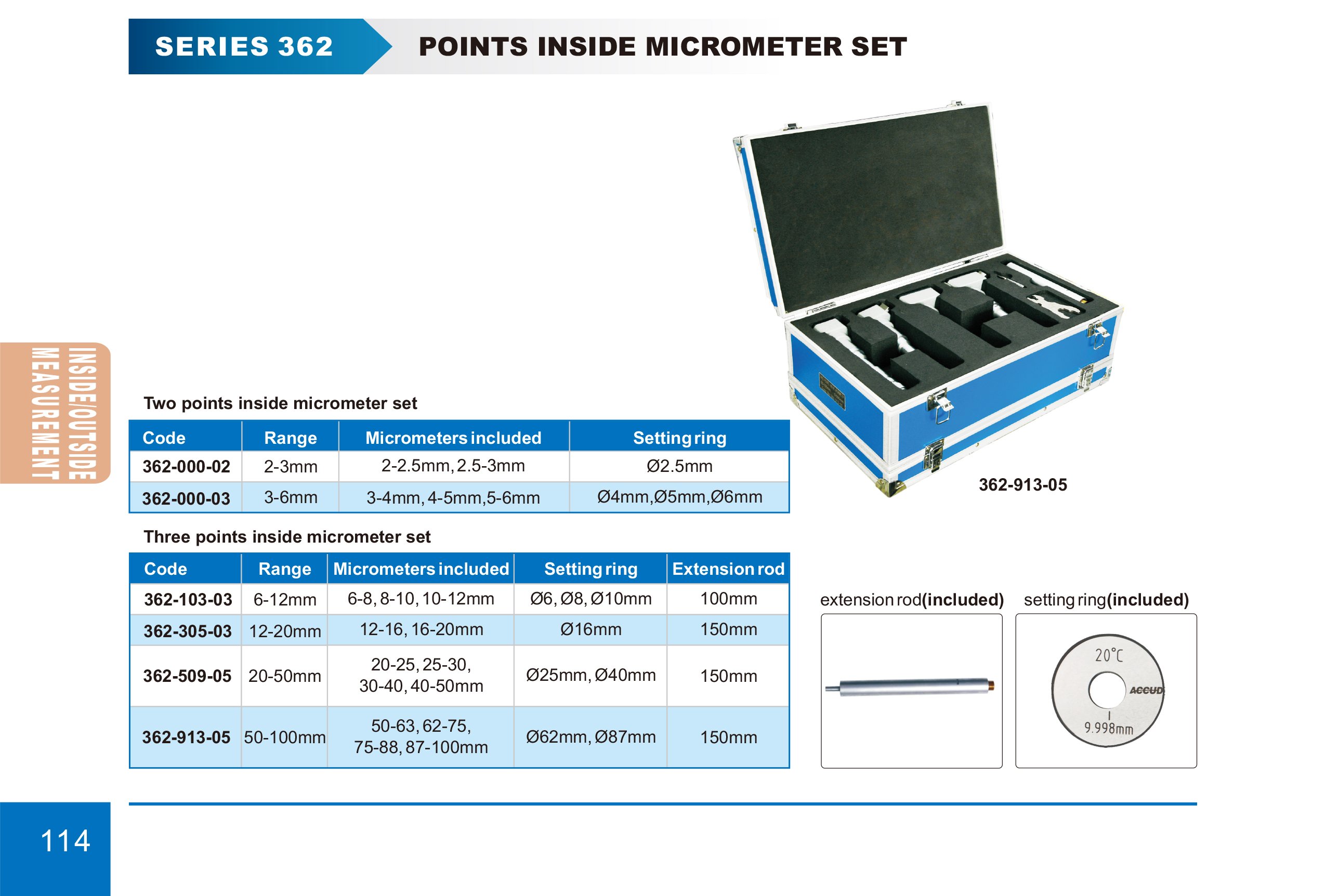 ACCUD 362-000-03 sada dvou digitálních dvoudotekových dutinoměrů, s nastavovacím kroužkem 3-6mm / 0.001mm