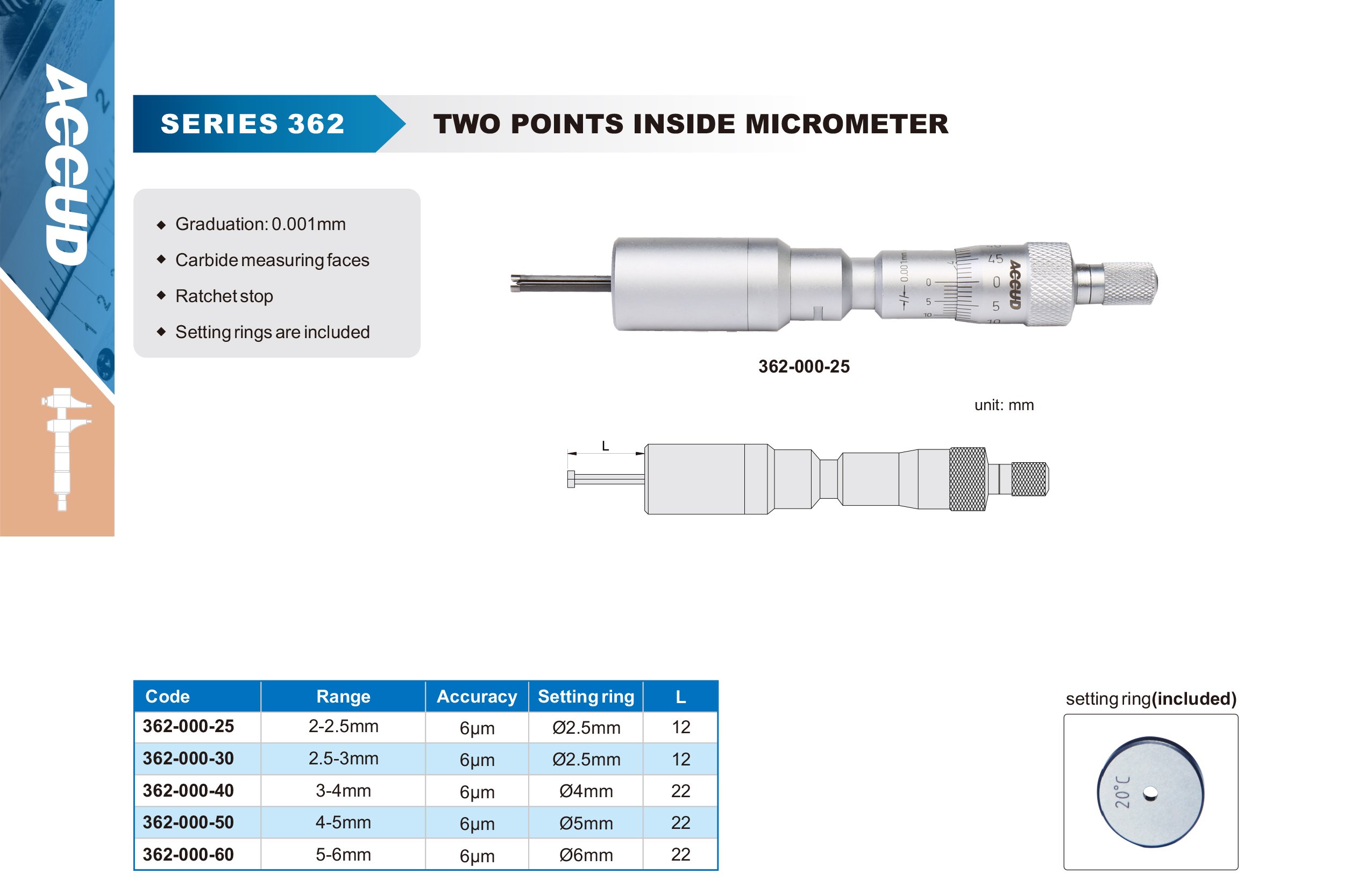 ACCUD 362-000-50 dvoudotekový dutinoměr, s nastavovacím kroužkem 4-5mm / 0.001mm