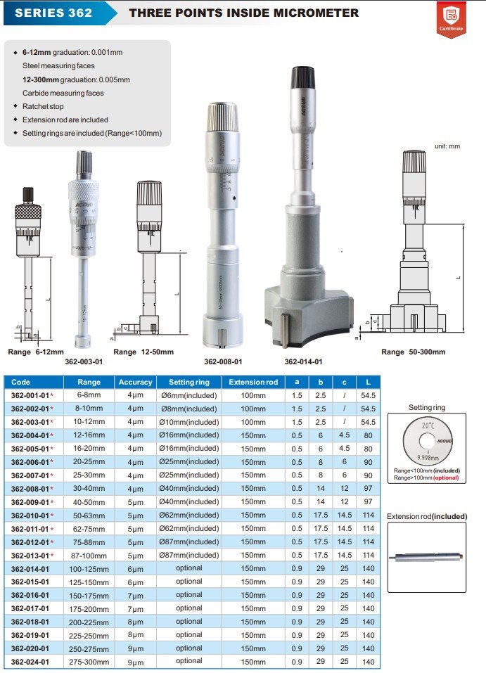 Třídotekový dutinoměr s prodlužovacím nástavcem. Technická specifikace: Rozsah: 200-225mm Dělení (stupnice): 0,005 mm Přesnost: 8μm Karbidové měřicí plochy Ráčna Prodlužovací tyč je součást… Více