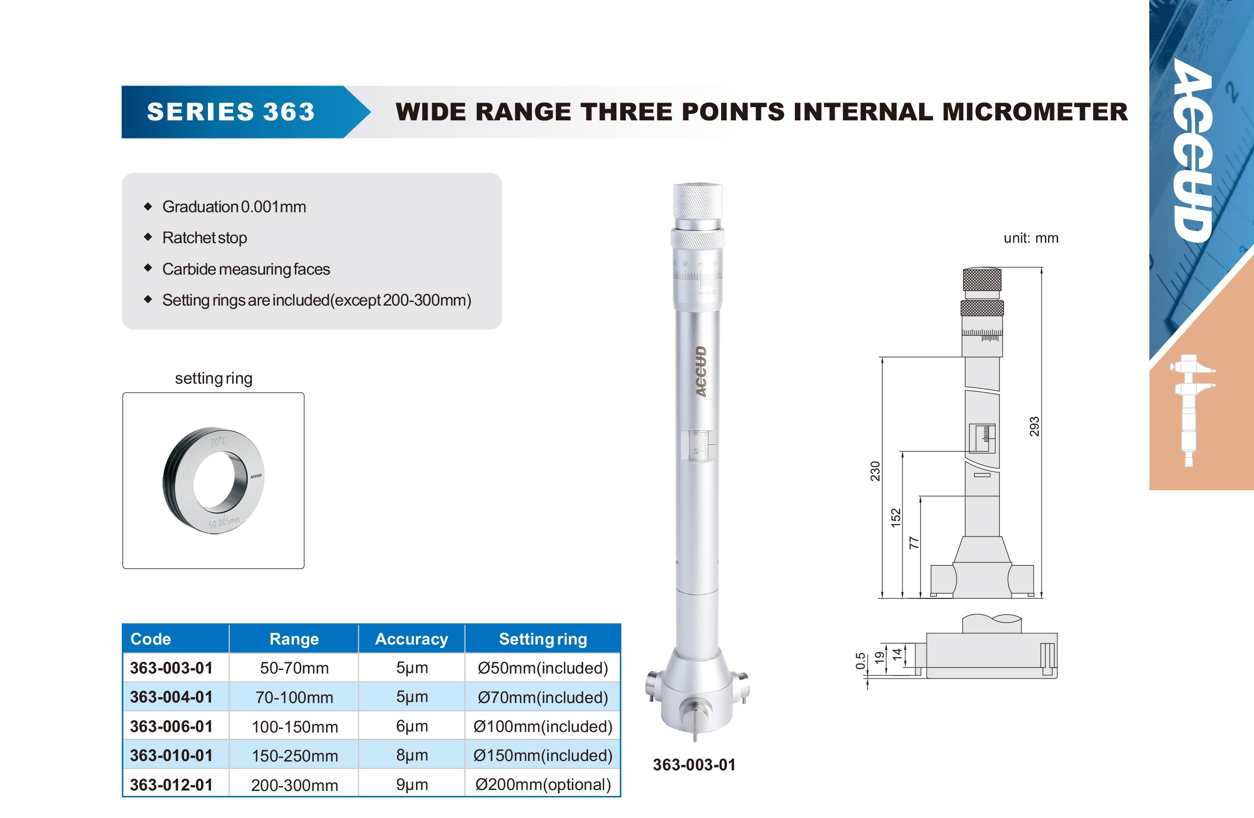ACCUD 363-012-01 třídotekový dutinoměr s širším rozsahem, bez nastavovacího kroužku 200-300mm / 0.001mm