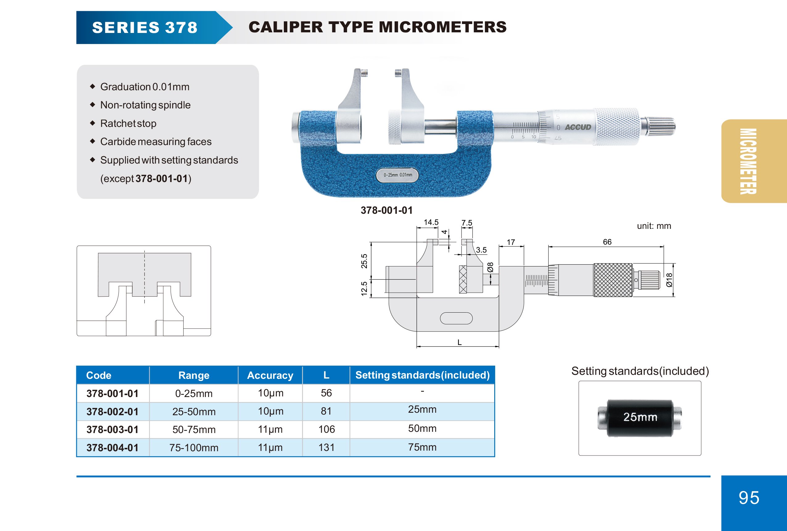 ACCUD 378-001-01 speciální mikrometr 0-25mm s měřicími čelistmi (0.01mm)