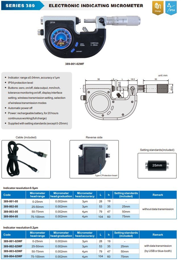 • Dodáváno s nastavovací měrkou (kromě 0-25mm)