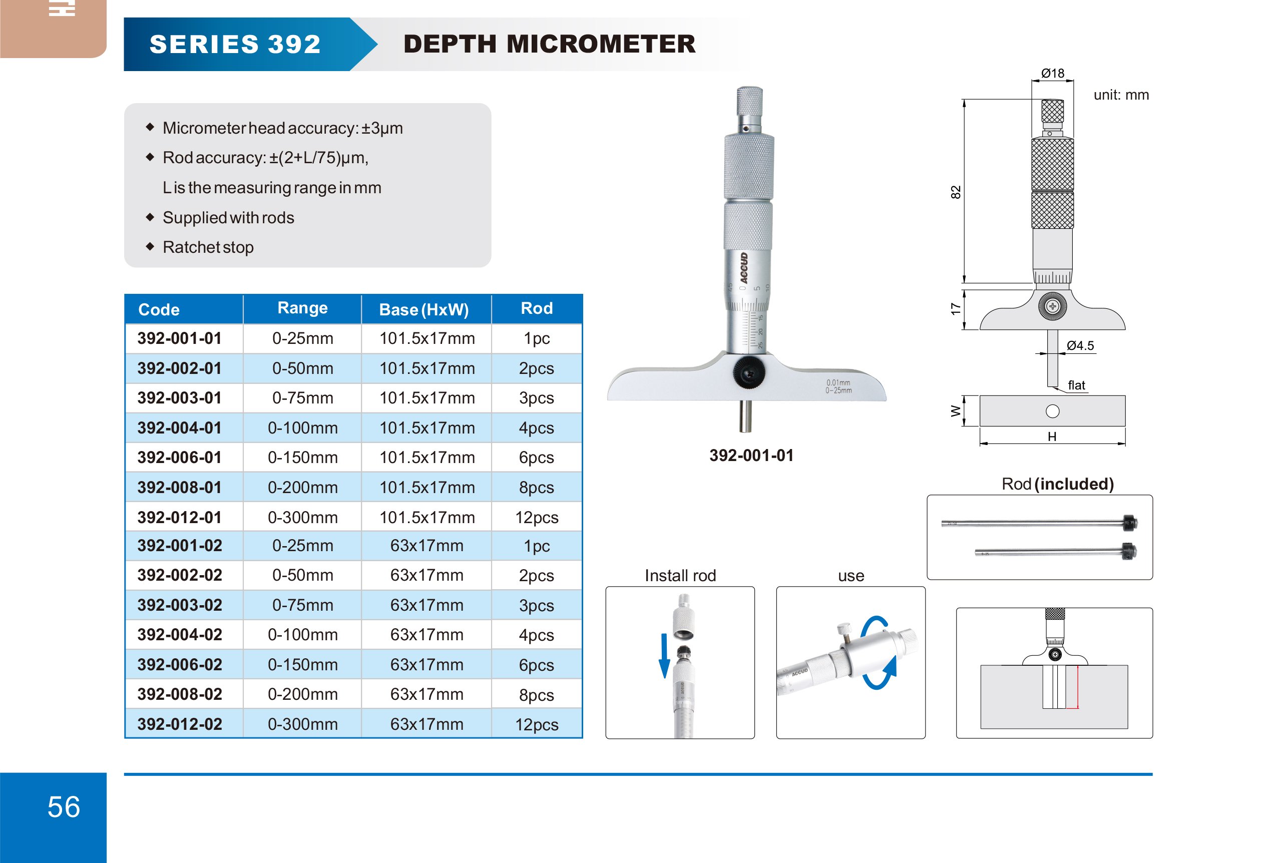 ACCUD 392-008-01 mikrometrický hloubkoměr 101.5x17mm / 0-200mm / 0.01mm