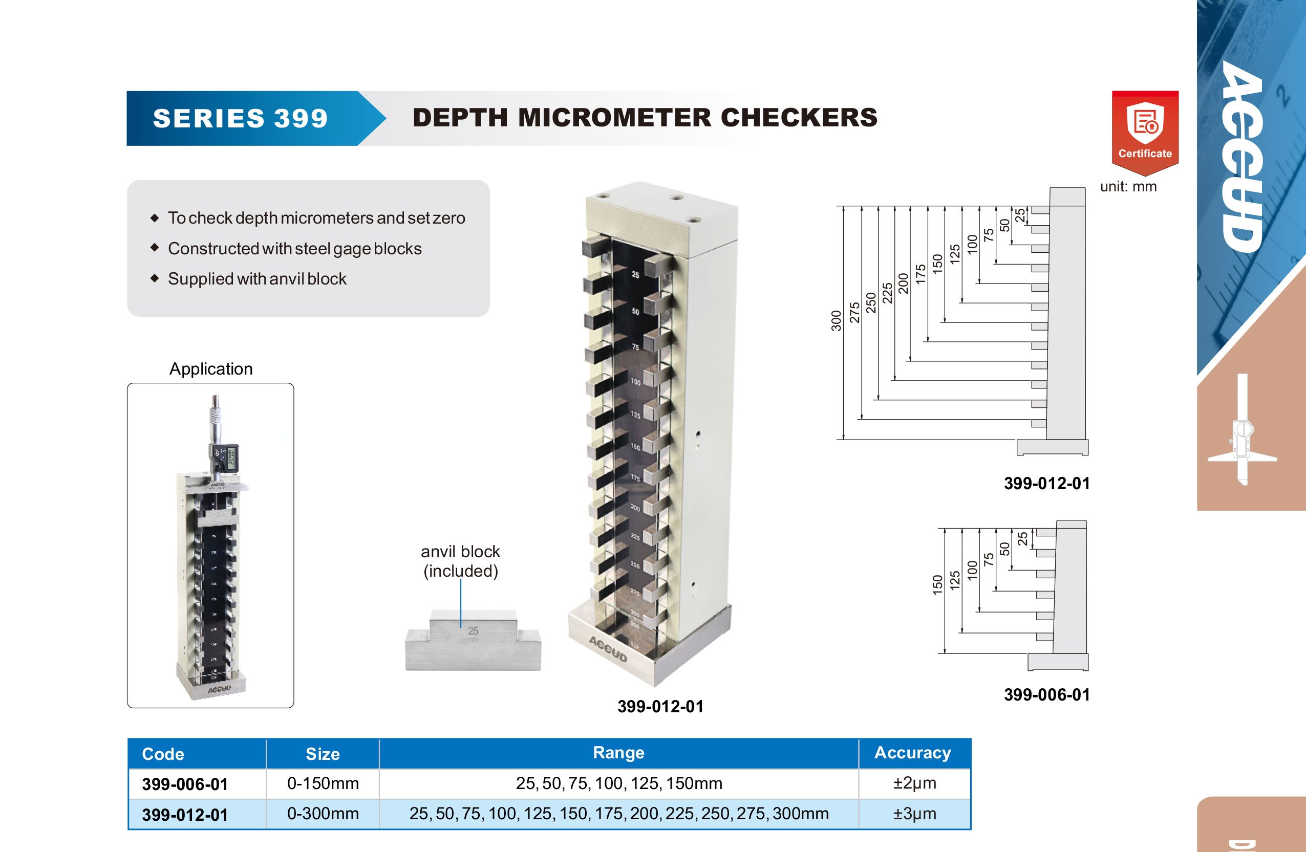 ACCUD 399-006-01 sada pro kontrolu a kalibraci mikrometrických hloubkoměrů 0-150mm