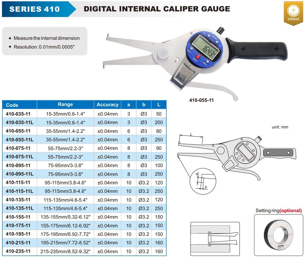 ACCUD 410-035-11L digitální úchylkoměr pro vnitřní měření 15-35mm/0.6-1.4" (délka ramene 200mm)