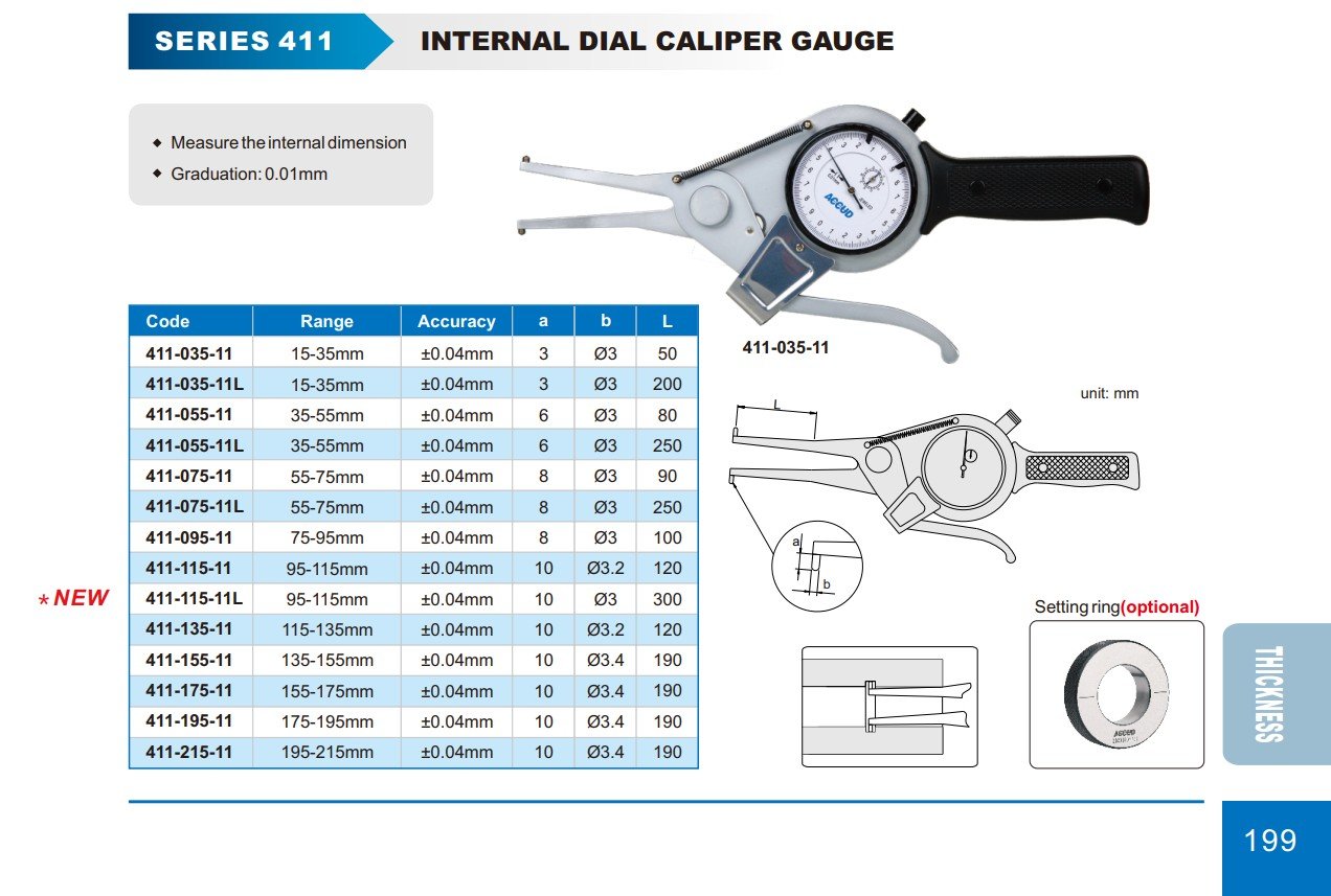 ACCUD 411-195-11 analogový úchylkoměr pro vnitřní měření 175-195mm (délka ramene 190mm)