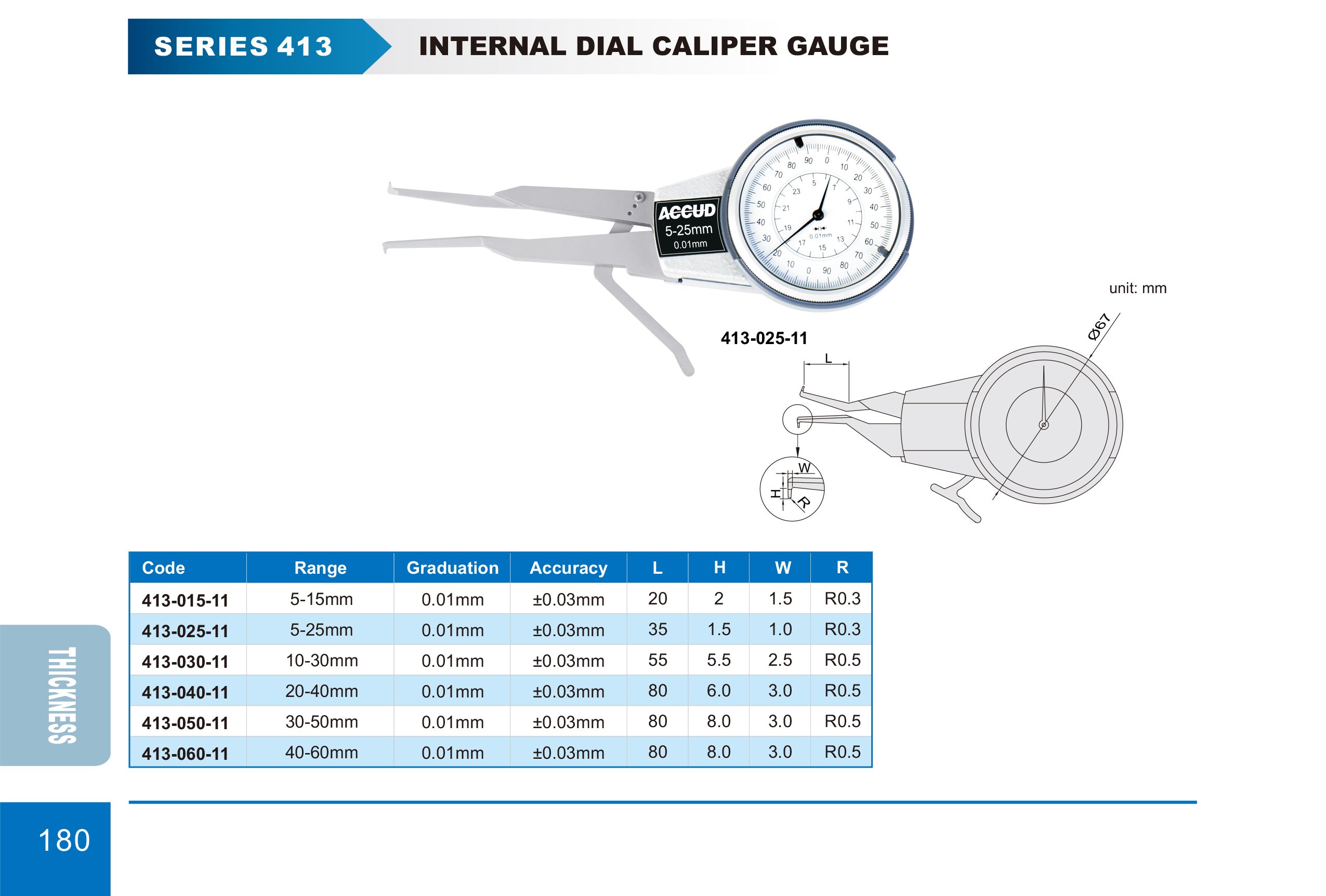 ACCUD 413-025-11 analogový úchylkoměr pro vnitřní měření 5-25mm (délka ramene 35mm)