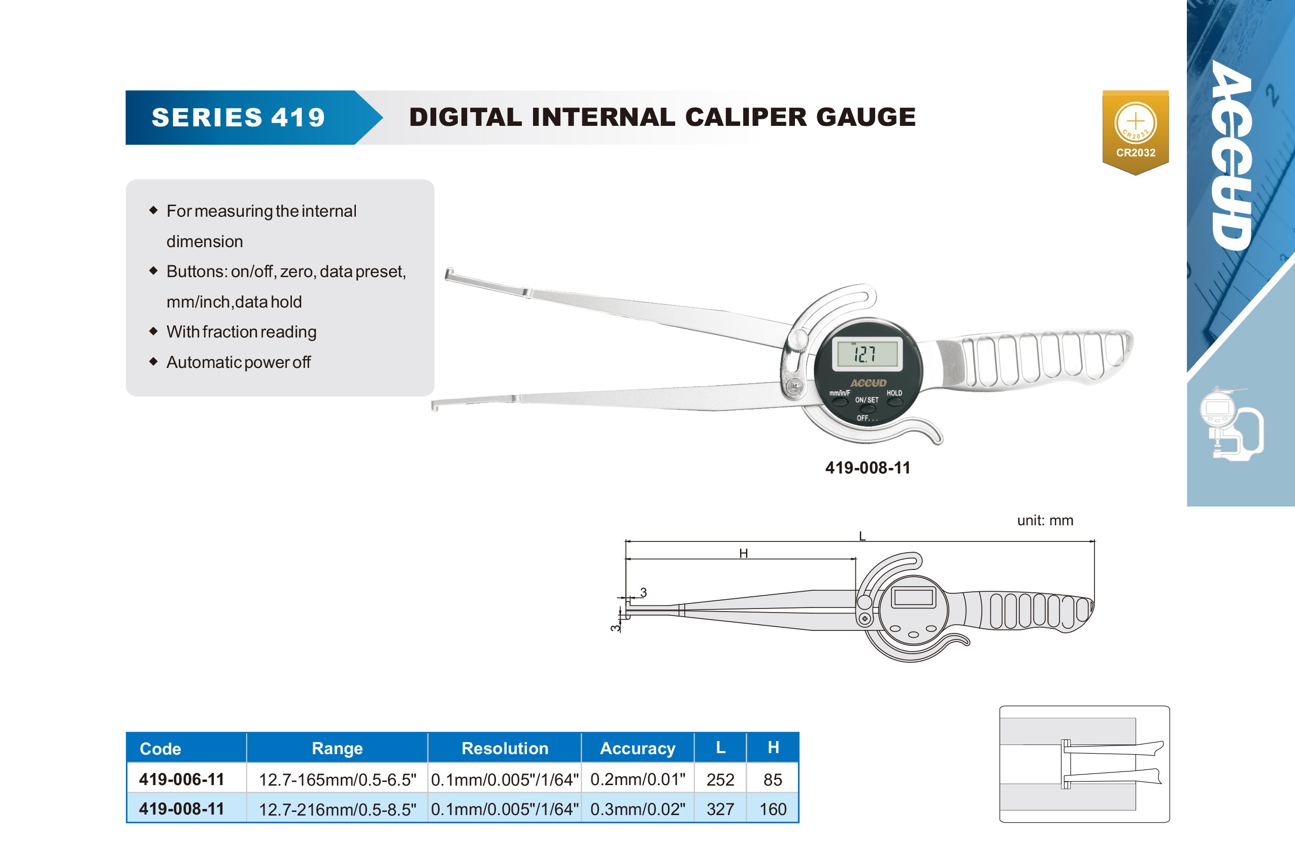 ACCUD 419-008-11 digitální úchylkoměr pro vnitřní měření 12.7-216mm ( 0.1mm ) (délka ramene 160mm)