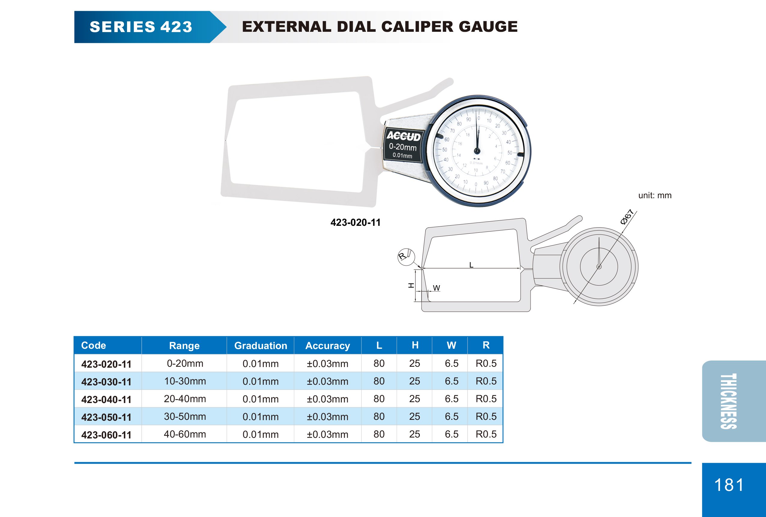 ACCUD 423-040-11 analogový úchylkoměr pro vnější měření 20-40mm