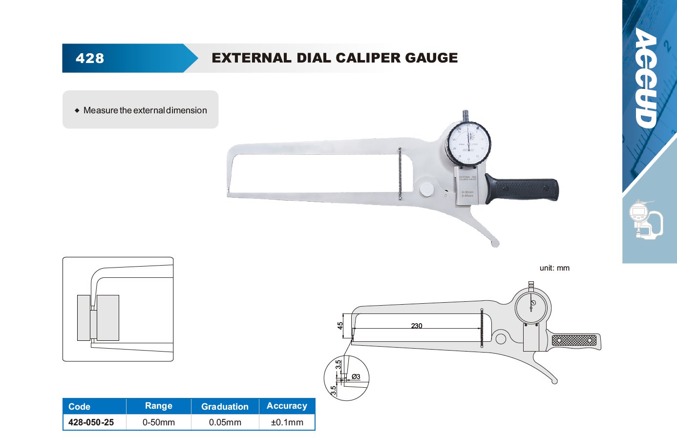 ACCUD 428-050-25 analogový úchylkoměr pro vnější měření 0-50mm ( 0.05mm )